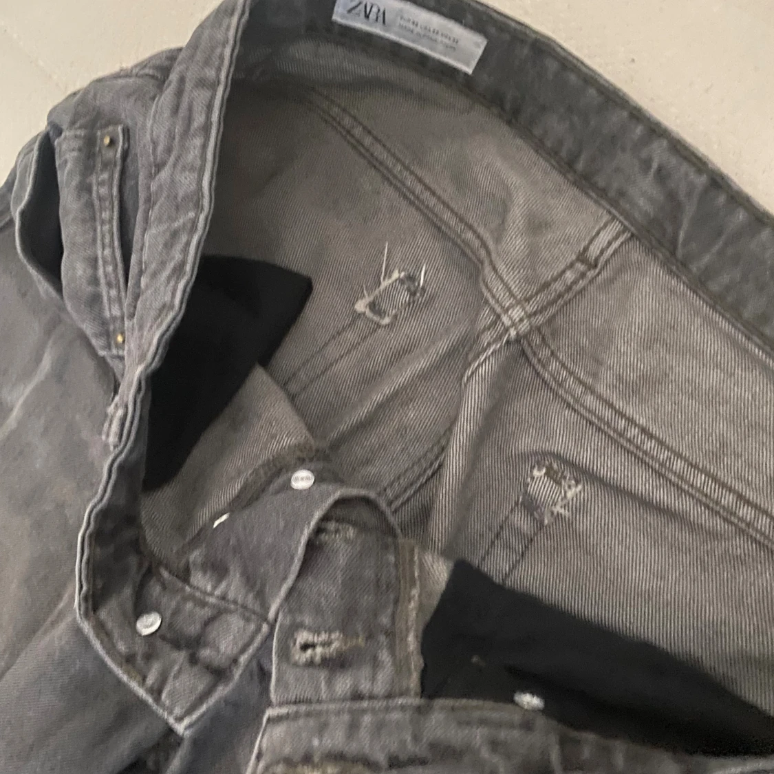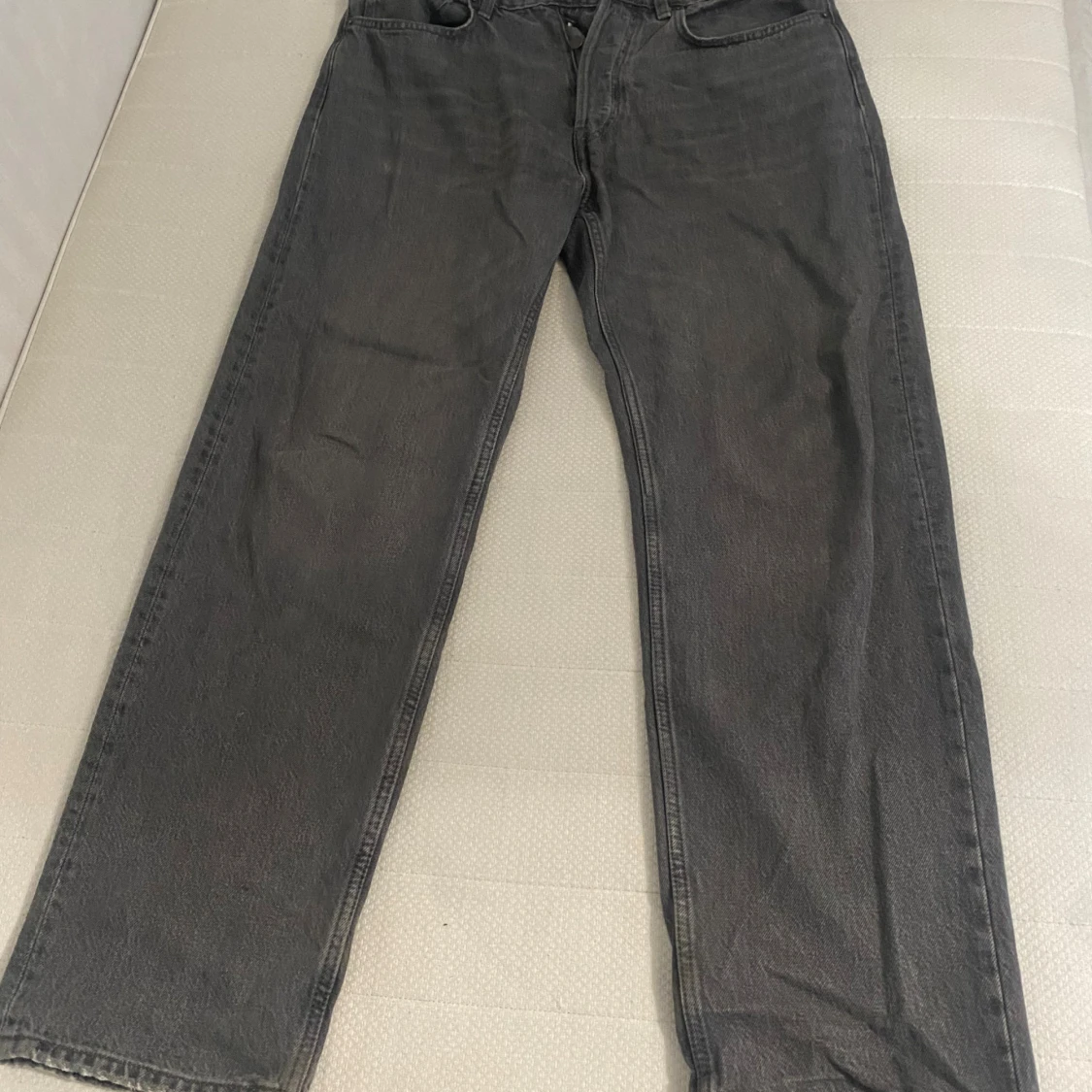 Ljussvarta/mörkgråa jeans köpa från zara för ett tag sen men knappt använda. Säljs för att dem inte kommer till användning längre. Inga konstigheter och inga defekter på jeansen. Storlek: 32/32