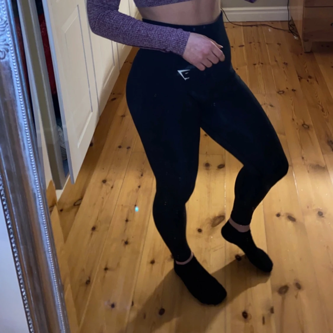 Gymshark vital seamless serien. använd fåtal gånger pga för stora i midjan, men nötta vid låren pga tvätt och vid användning i övrigt väldigt fina. skulle säga att de är som en Medium i storleken. Ordinarie pris 599