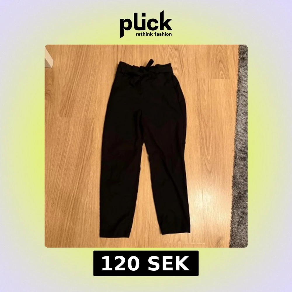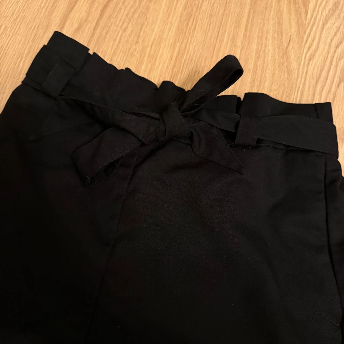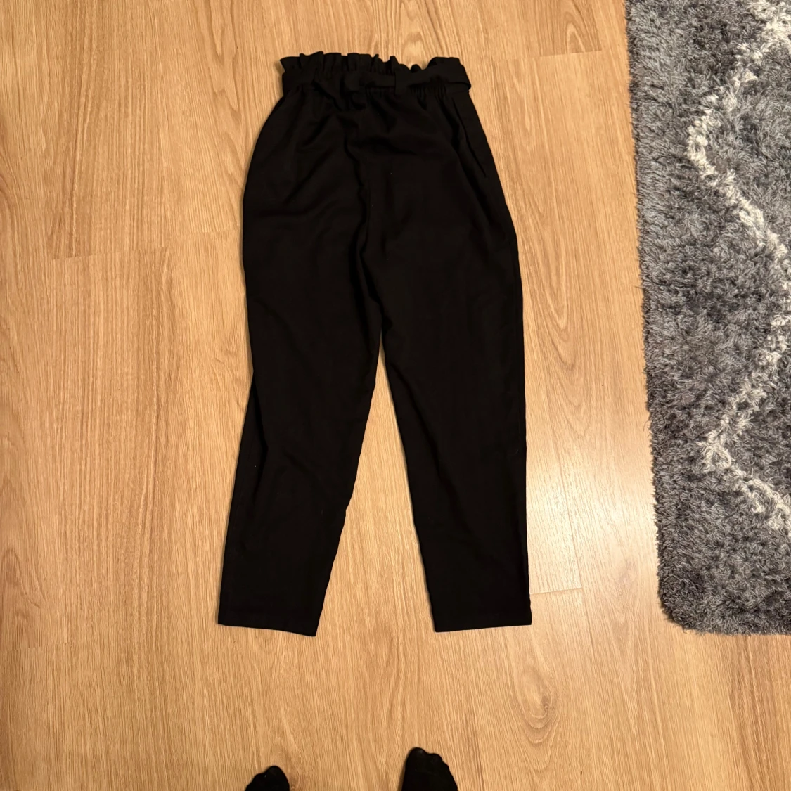 Snygga svarta byxor med hög midja och ett trendigt knytband i midjan. Byxorna har en rak passform och är tillverkade i ett mjukt tyg som känns skönt mot huden. Perfekta för dig som gillar stilrena och moderna plagg med en twist.