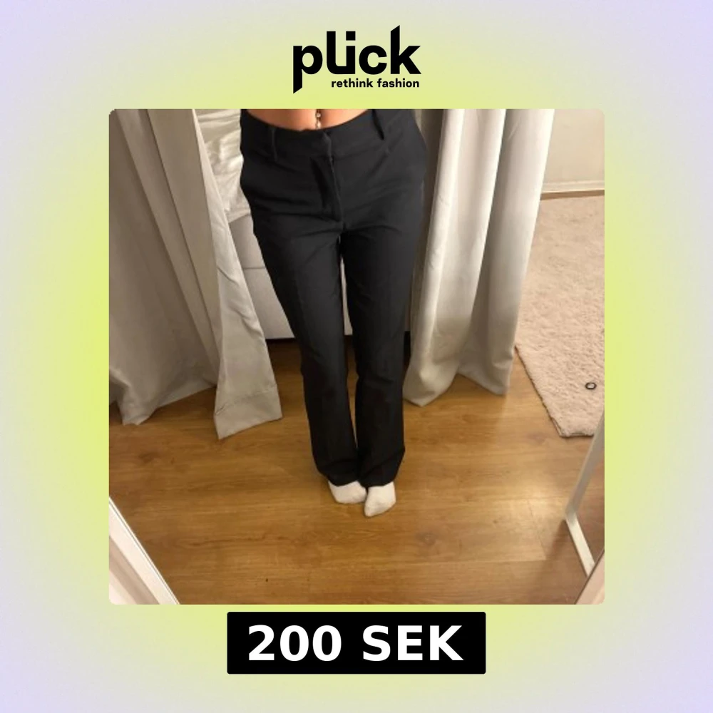 Svarta högmidjade kostymbyxor från BikBok i storlek 36. Har ej använt dom många gånger och dom har inga skador eller fläckar