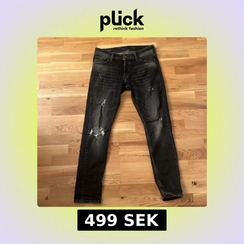 Säljer mina slim fit jack an jones jeans jag köpte i butik i mall of scandinavia för 699 tror jag. I storlek 30/30 med hemjorda slitningar