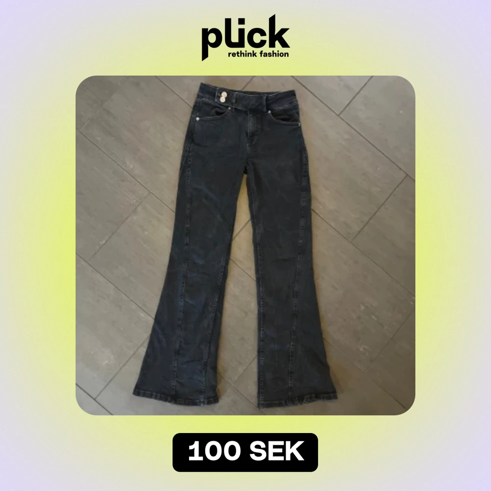 Bootcut jeans i storlek XS med snygg svart tvätt. Väldigt bra skick, knappt använda 🩷