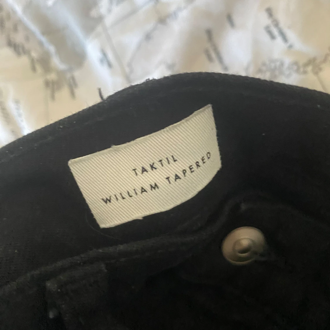 Svarta jeans från Taktil, modell William Tapered. Snyggt minimalistiskt vitt läderpatch bak i midjan och klassiska bakfickor. Tapered fit som smalnar av nedtill, tillverkade i robust bomullstyg. Perfekta för en clean och stilren look.