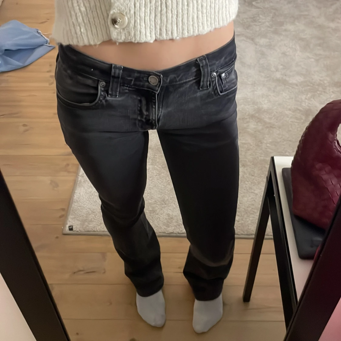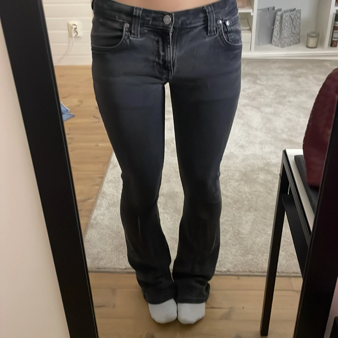 Svarta lĂ„gmidjade bootcut jeans i storlek 32đ( passar mig bra som brukar ha 32/34)