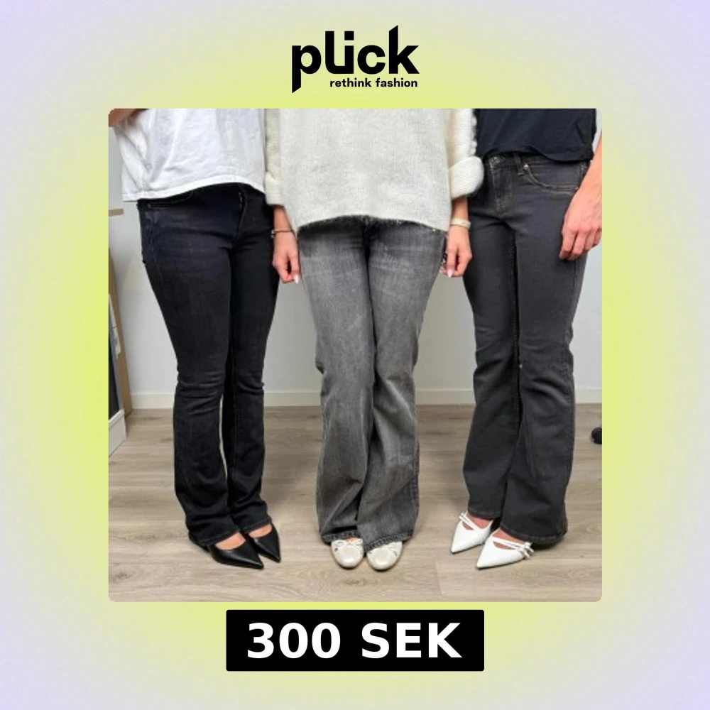 Svarta jeans längst till vänster. Så fina med så svarta jeans, perfekta till vardag! I storleken 34 men skulle säga att dem även passar mig som annars har 36🖤