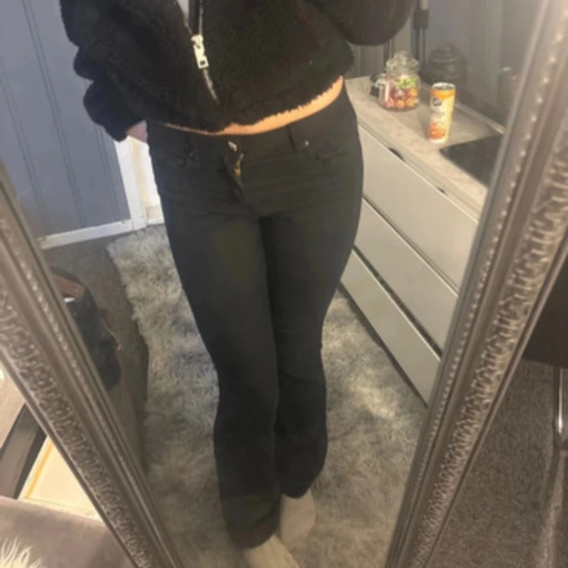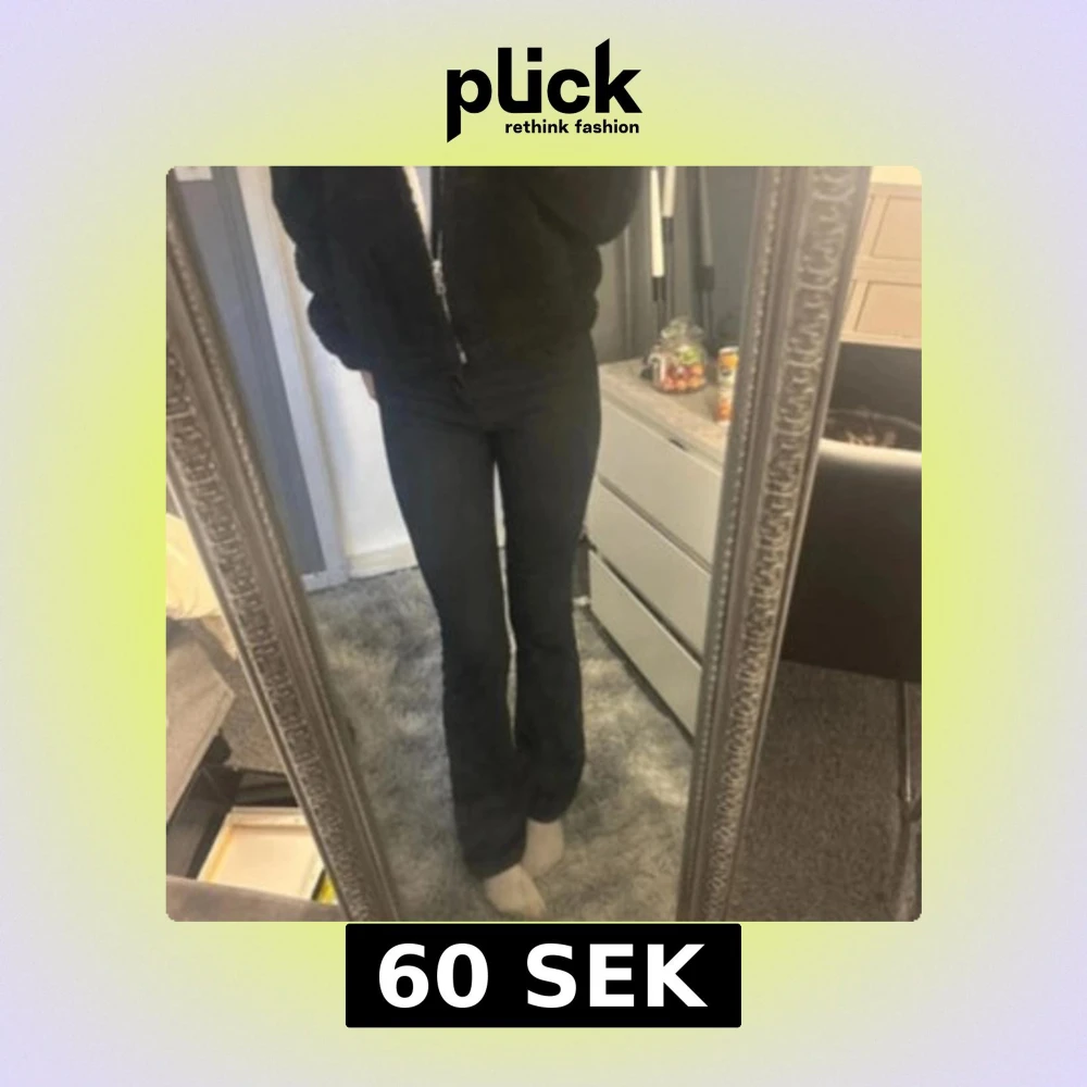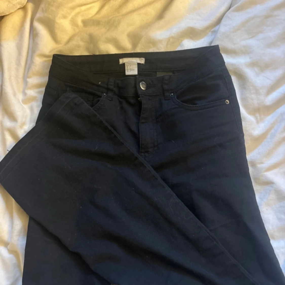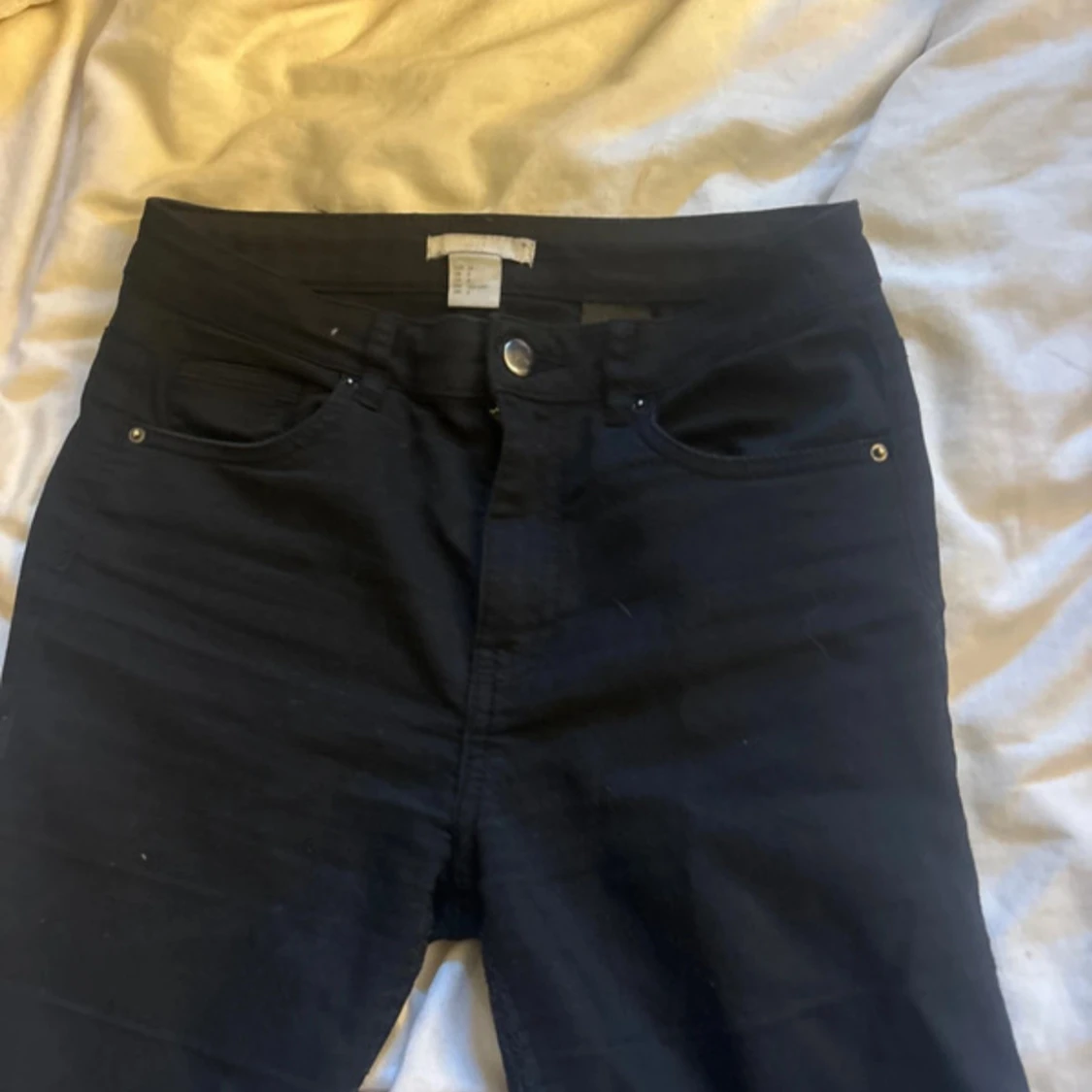 Svarta typ jeans men dom är i ett lite mjukare tunnare material vilket gör dom jätte bekväma. Skulle säga midwaist