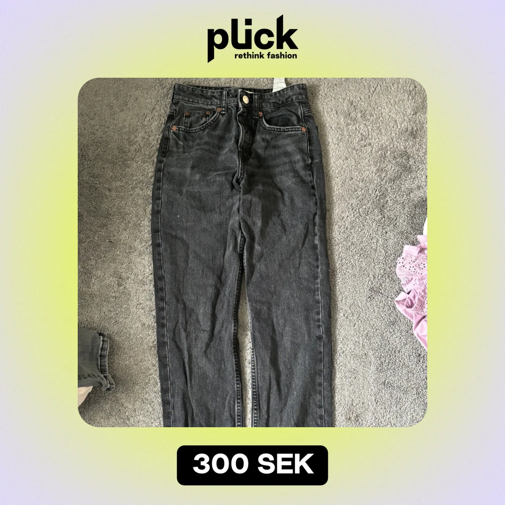 Säljer ett par snygga svarta jeans i mycket bra skick. De är mellanmidjade och sitter snyggt på. Knappt använda. Kontakta för mer💗