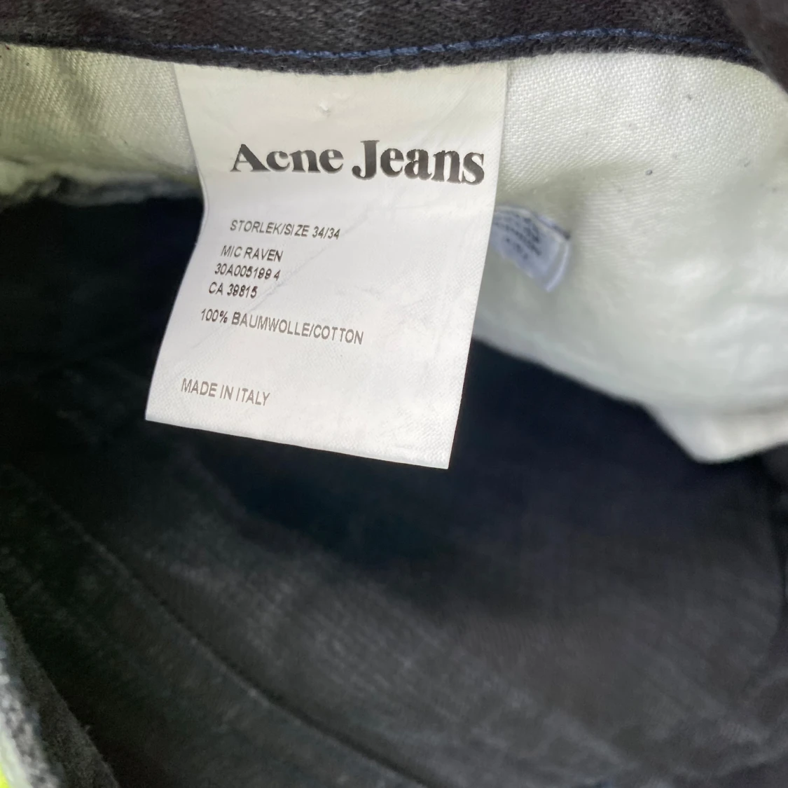 Säljer ett par svarta jeans från Acne Jeans i storlek 34/34. De är tillverkade av 100% bomull och har en klassisk rak passform. Perfekta för både vardag och fest! 🖤