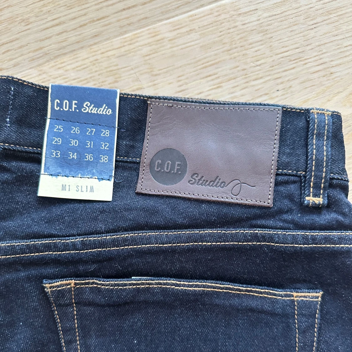 Säljer ett par snygga svarta jeans från C.O.F. Studio i storlek 34. De har en slim passform och är helt nya med etikett kvar. Perfekta för både vardag och fest! 🖤