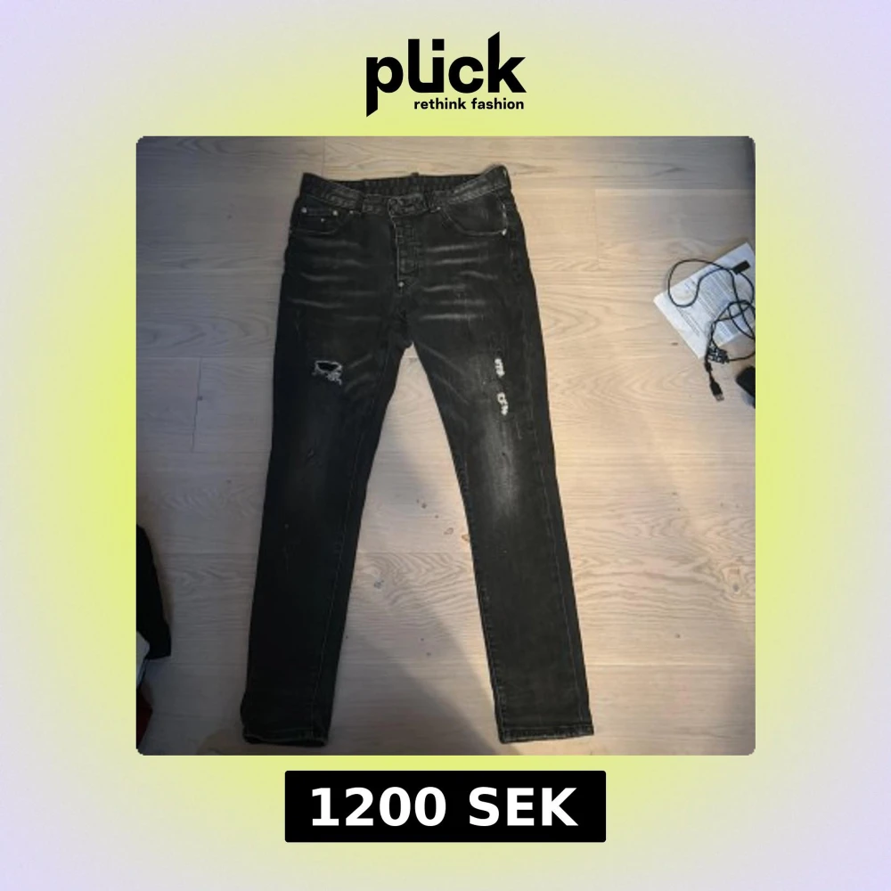Snygga svarta jeans från Dsquared2 med slitna detaljer passar både till grish och orten stil😃ny pris är runt 6-7 tusen säljer för 1200 pris kan diskuteras😃passar folk som har w32 och w34