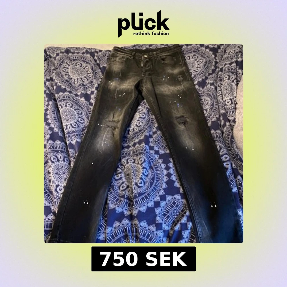Snygga svarta jeans från Dsquared2 med coola slitningar och färgstänk. Äkta jeans pris kan minska vid snabb affär