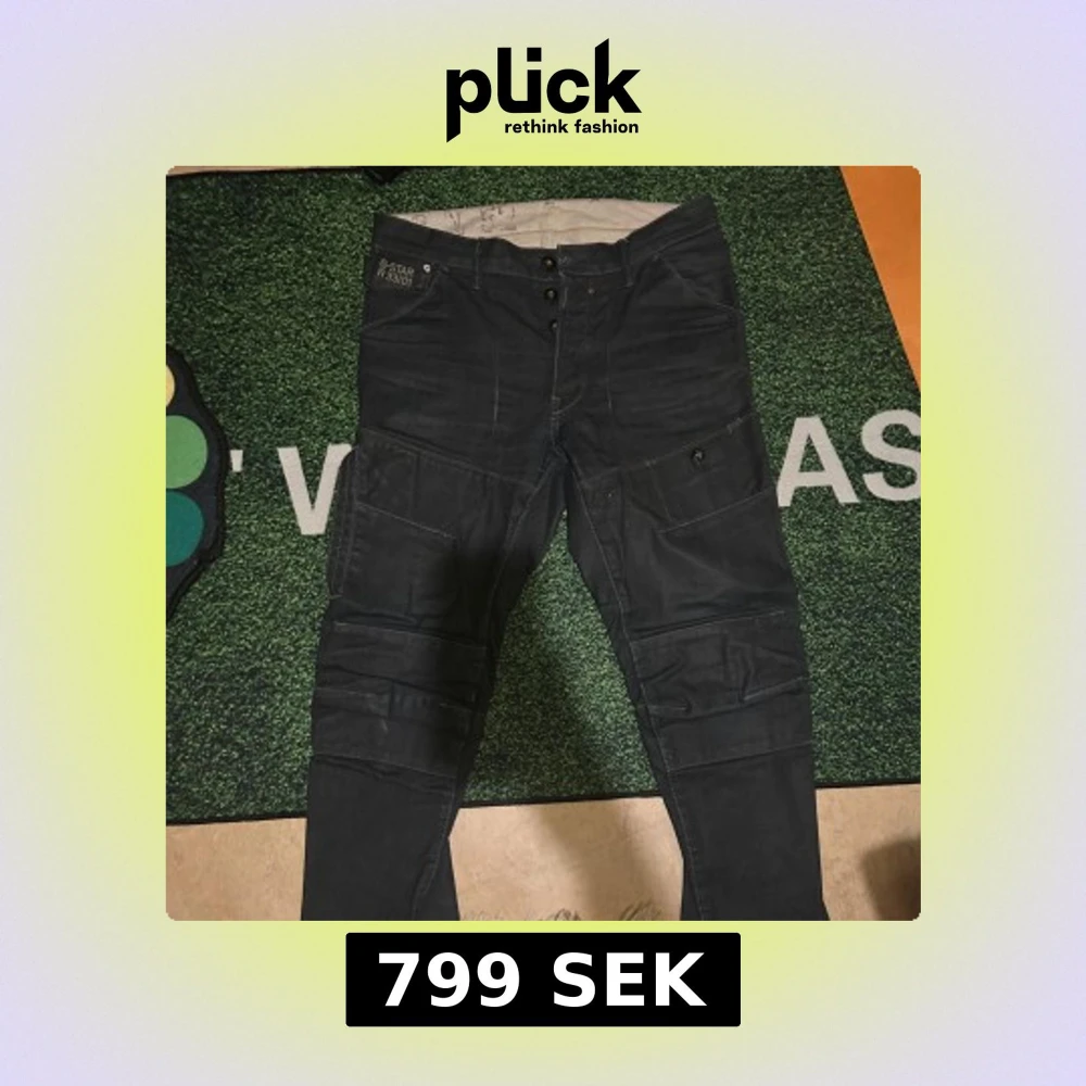 Säljer ett par svarta jeans från G-Star RAW, modell R33/01. Byxorna har flera fickor med knappstängning, coola sömmar och detaljer både fram och bak. Materialet är slitstark jeans och passformen är loose med tapered ben. Perfekt för dig som gillar streetwear och funktionella plagg.