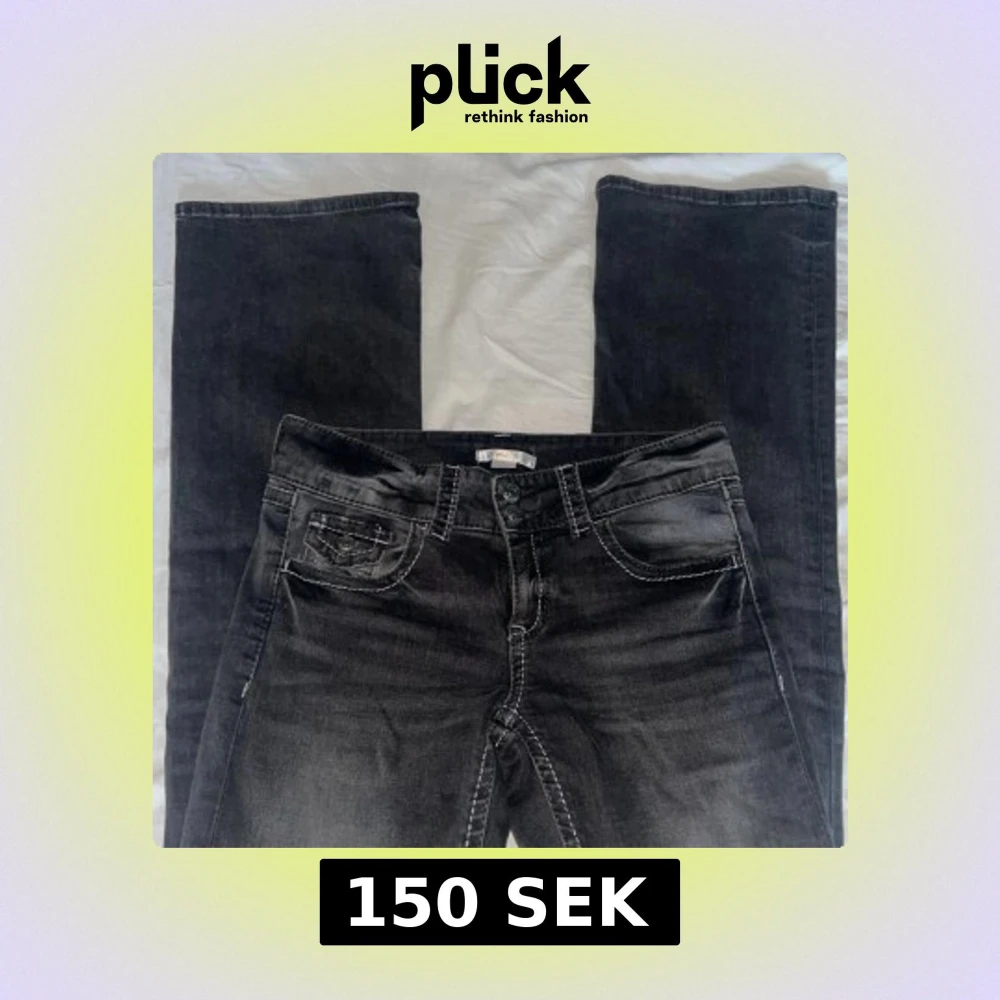 Svarta bootcut jeans från Gina tricot med detaljer av vita sömmar, storlek 164. Knappt använda så i väldigt bra skick