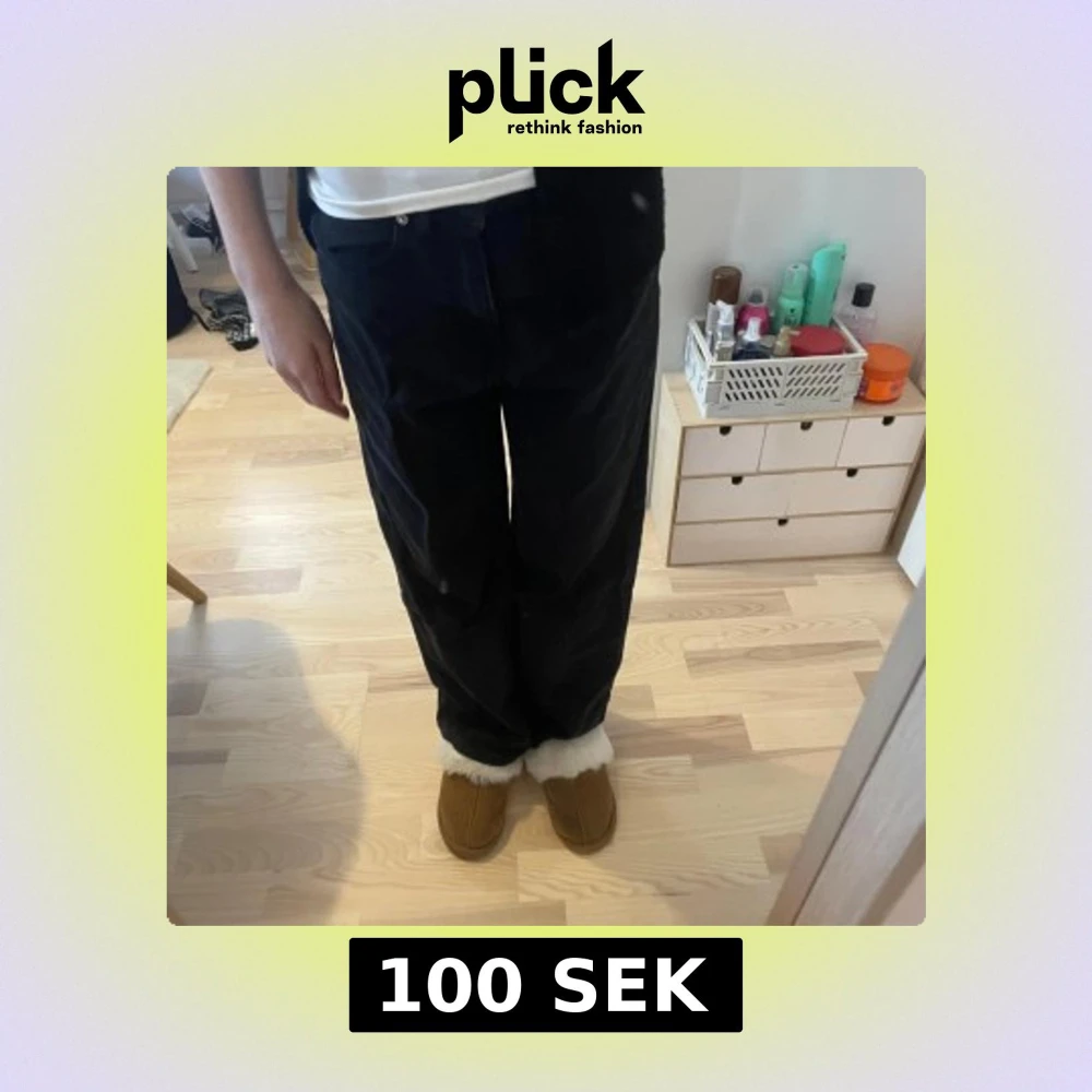 Snygga svarta byxor med en klassisk design. De har en rak passform och är perfekta för en stilren look. Byxorna har fickor både fram och bak, vilket ger en praktisk touch.