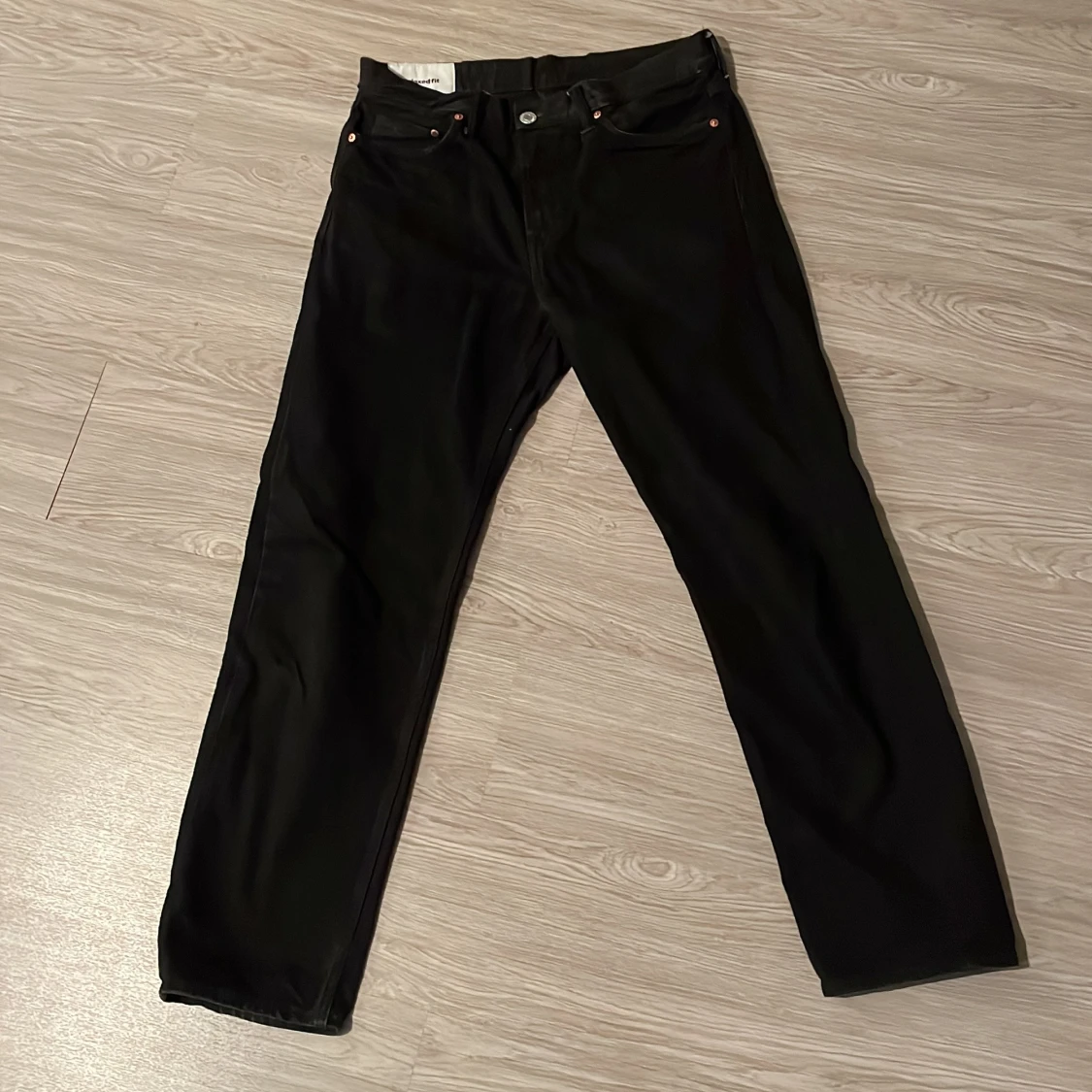 Säljer ett par svarta jeans från H&M i relaxed fit. Använda ett par gånger men inga skador, inte använt på 3-4 år så jag säljer..