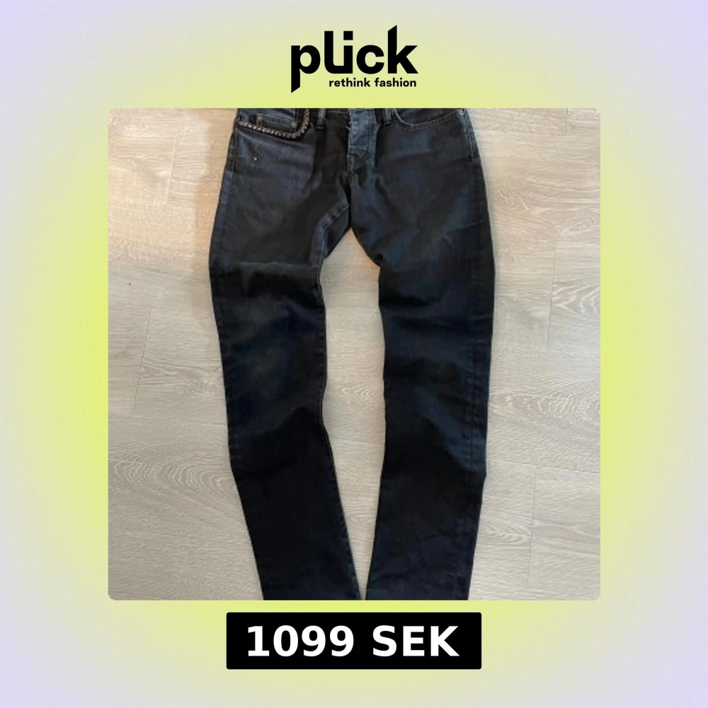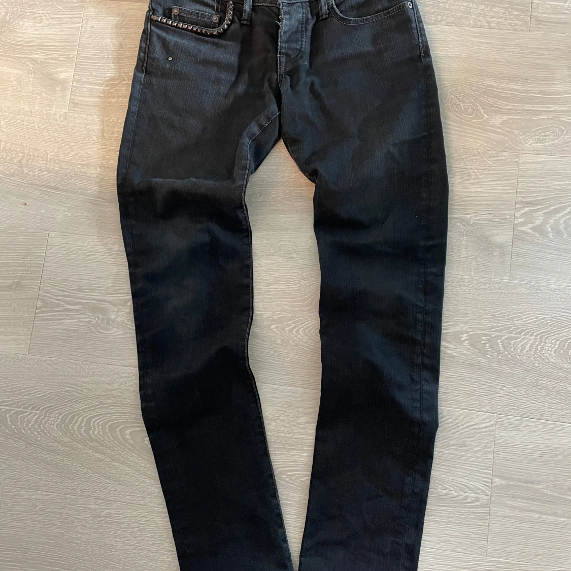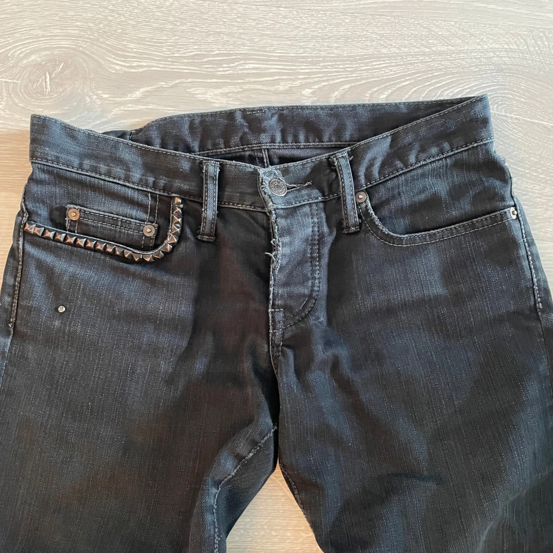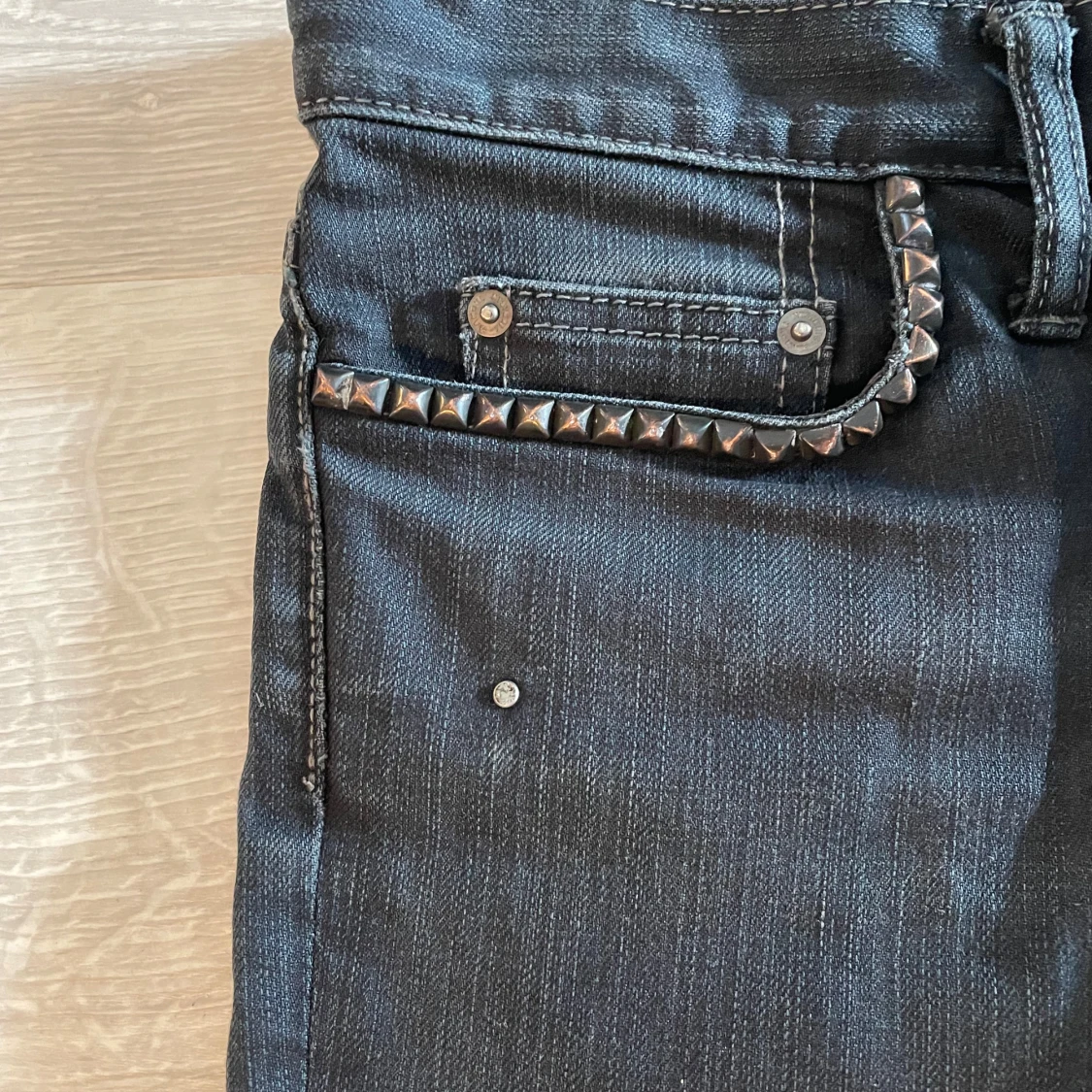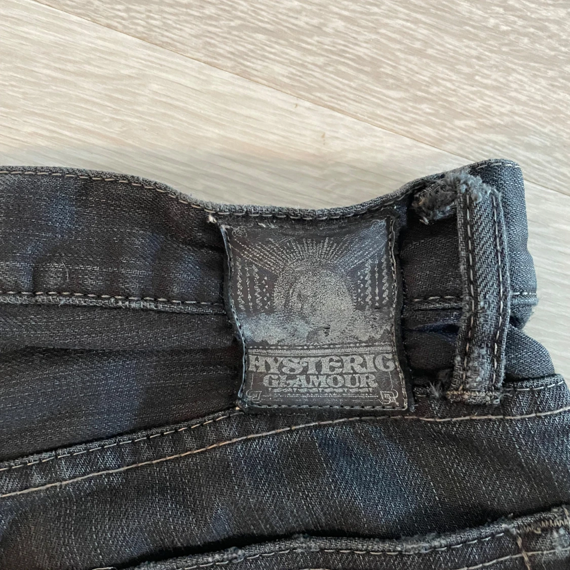 Snygga svarta jeans från Hysteric Glamour med en cool detalj av nitar vid fickan. Storlek S, midjemått: 39cm, längd: 101cm
