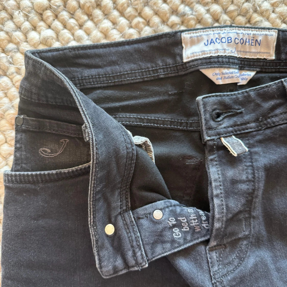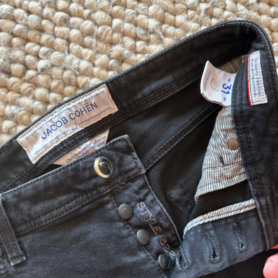 Säljer ett par svarta jeans från Jacob Cohën, modell Style 622. Klassisk femficksdesign med knappar i gylfen och diskreta detaljer. Snygg passform och stilren look, perfekta till många outfits.