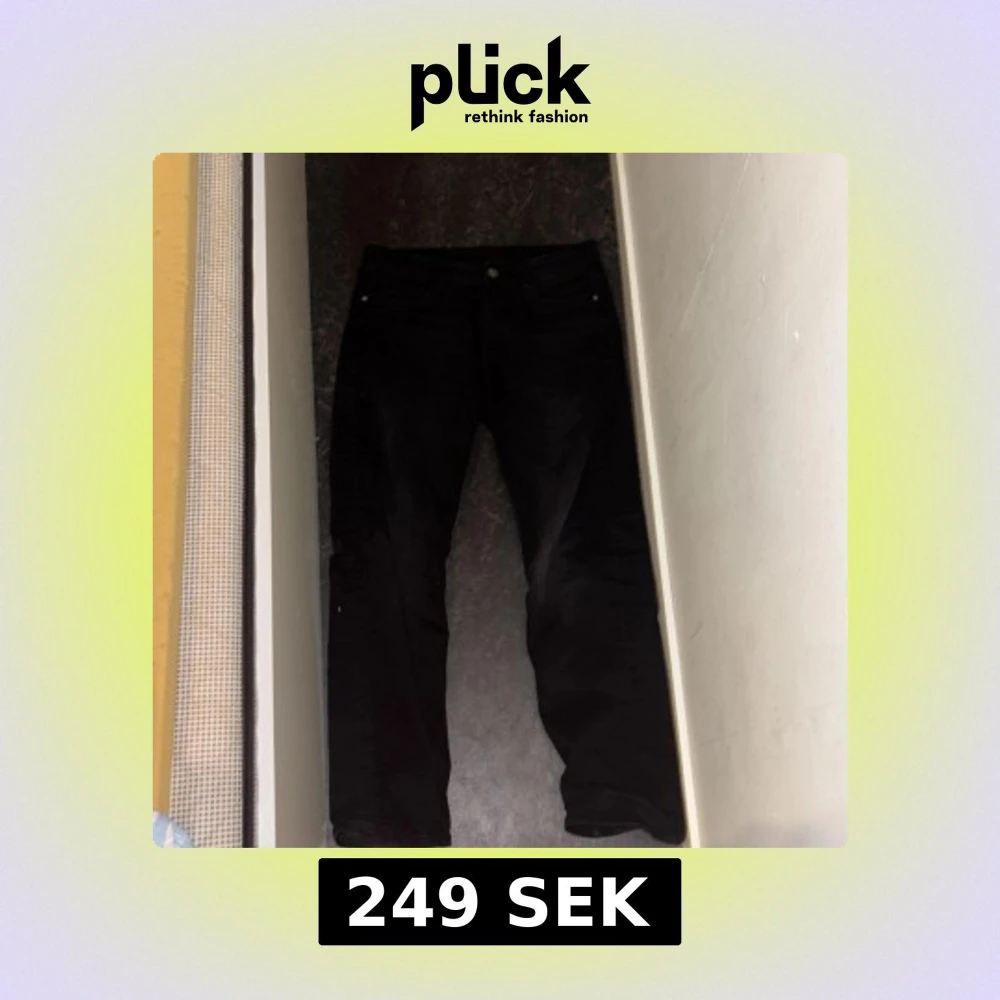 Svarta jeans från Kappahl i klassisk femficksmodell. Jeansen har rak passform och normal midja, tillverkade i ett mjukt bomullstyg med lite stretch för extra komfort. Perfekta för dig som gillar en enkel och stilren look. Pris kan diskuteras.
