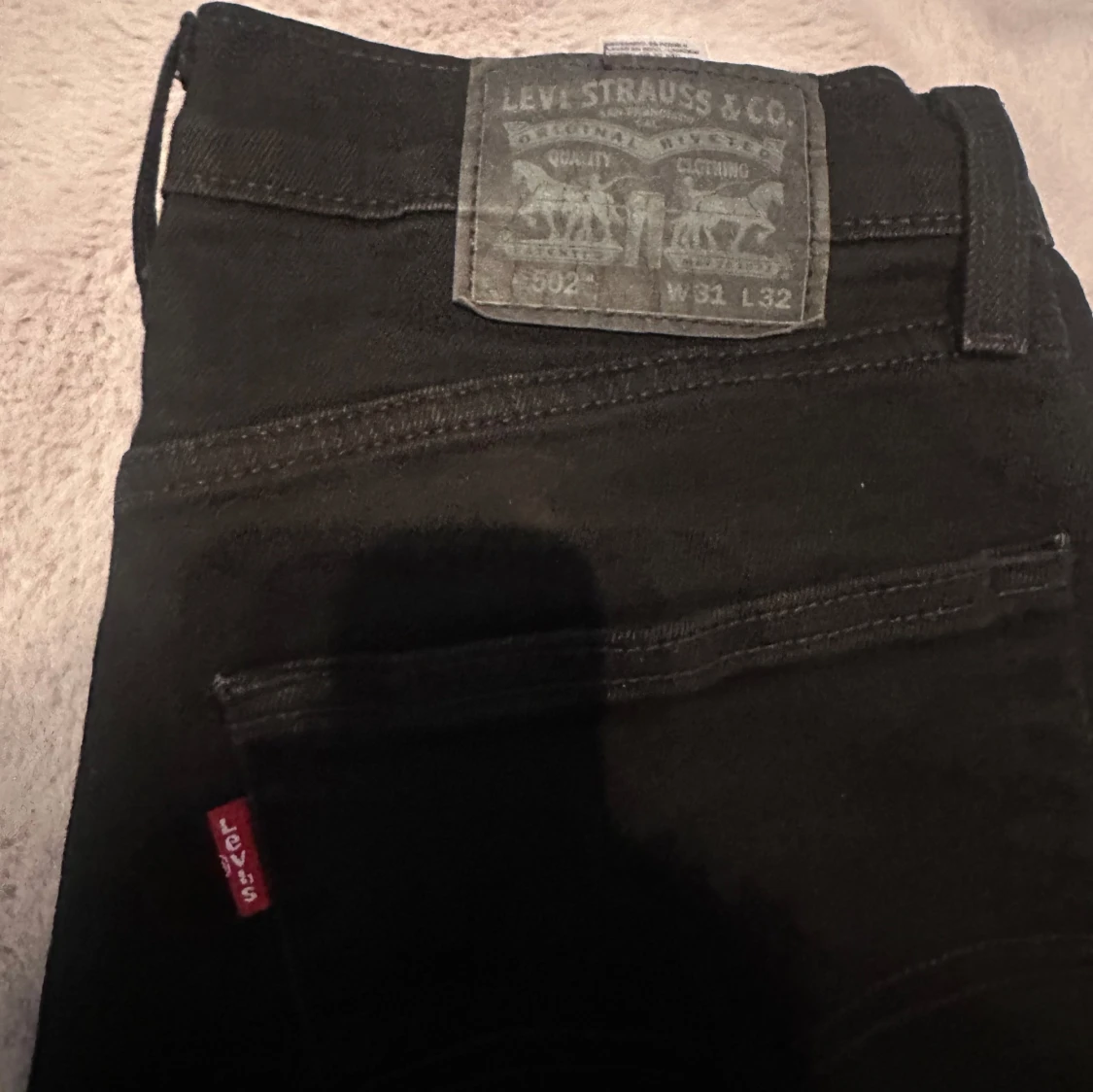 Säljer ett par klassiska svarta Levi's 502 jeans. De har en normal passform och är tillverkade i slitstarkt denim. Perfekta för en stilren look. Sitter mindre mer som 29-32!