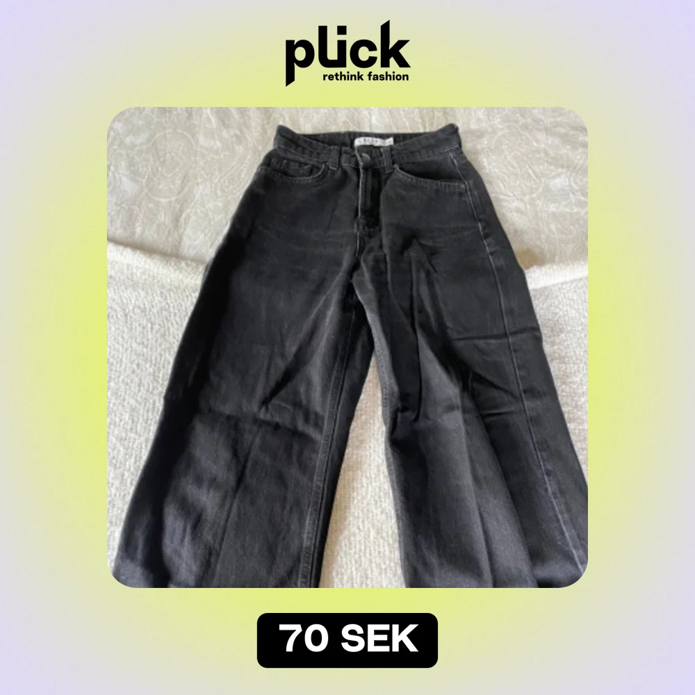 Säljer ett par svarta jeans från NA-KD. De har en klassisk femficksdesign och är i en wide modell Perfekta för vardagen