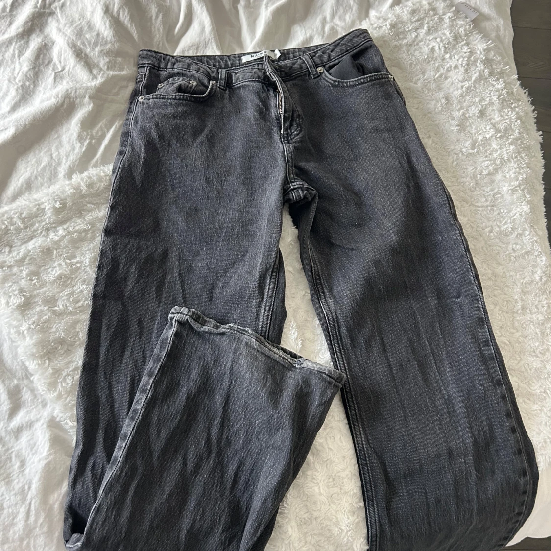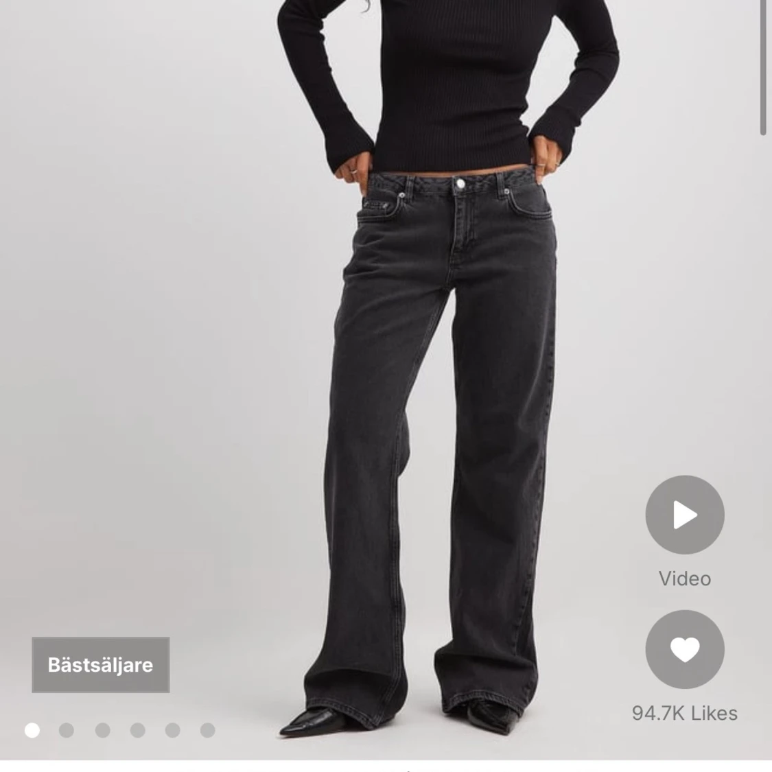 Säljer ett par svarta jeans från NA-KD, trasiga längst ner men går att klippa bort eller sy upp💕