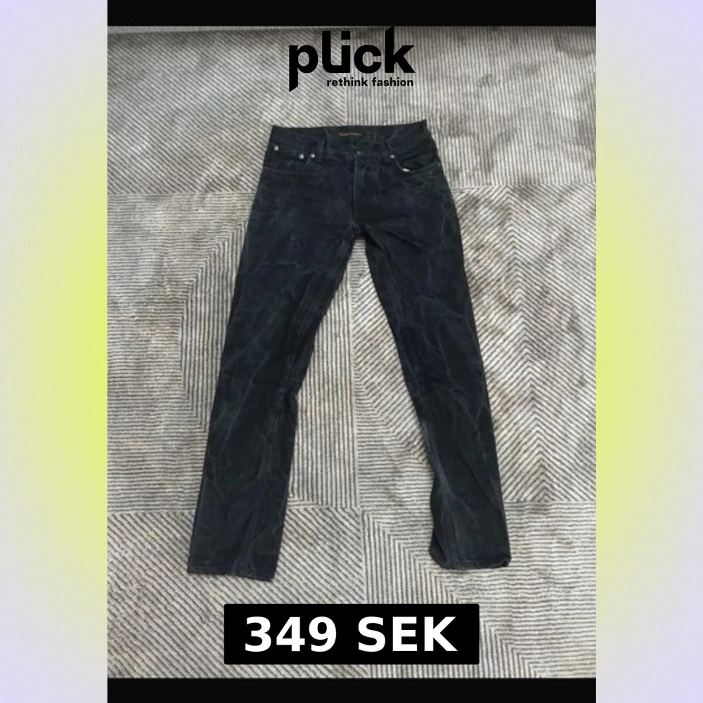 Snygga svarta jeans från Nudie Jeans i klassisk femficksmodell. Jeansen har en rak passform och är tillverkade i slitstark bomull med Nudie Jeans logga på bakfickan och läderpatch i midjan. Perfekt för dig som gillar stilrena och tidlösa jeans.