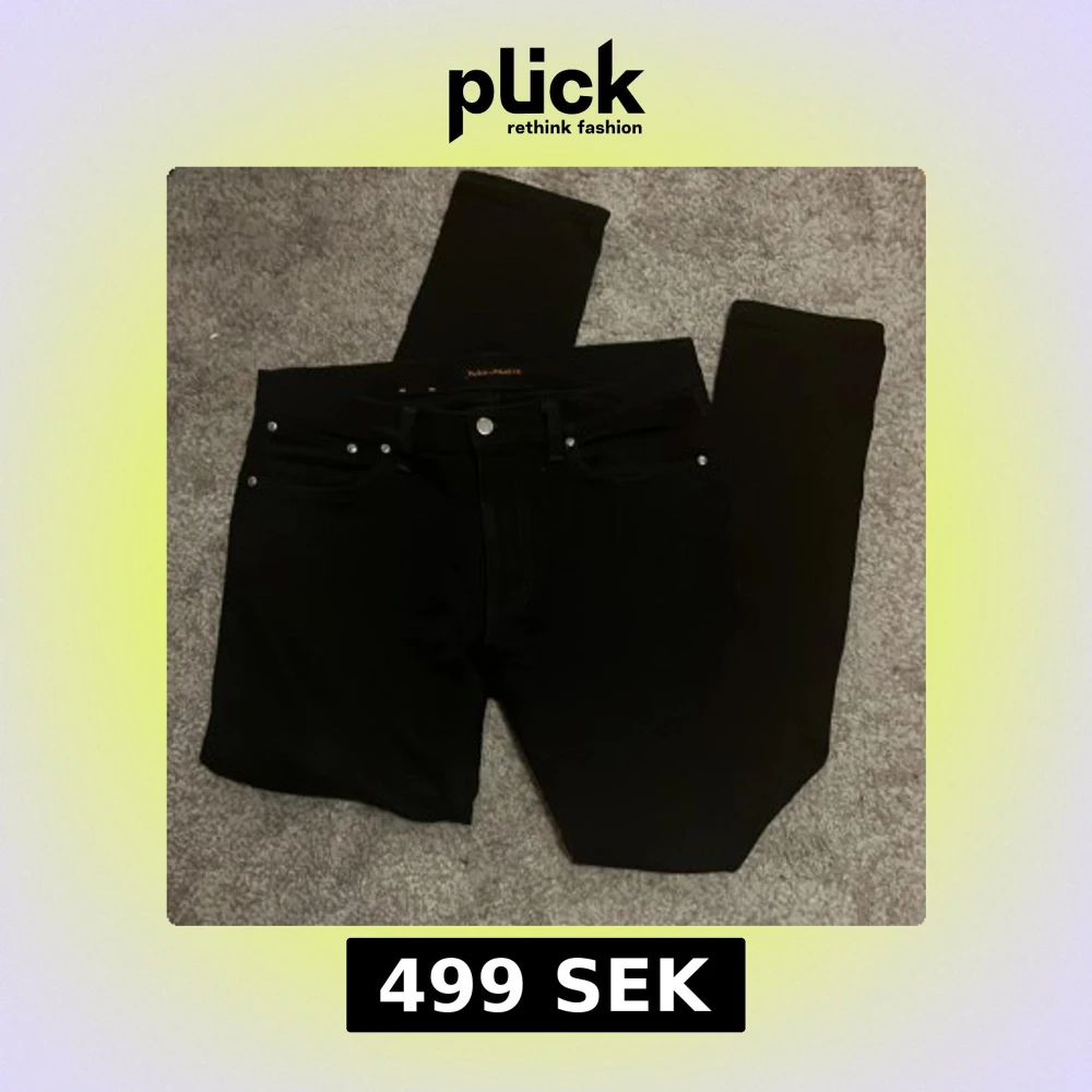 Snygga svarta jeans från Nudie Jeans i ekologisk bomull. De har en klassisk design med dragkedja och knappar. Perfekta för en stilren look.