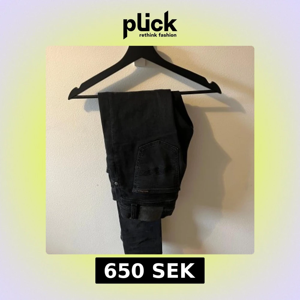 Säljer ett par svarta jeans från Nudie Jeans. Modell: tight terry, byxorna sitter slim fit. Använda fåtal gånger och är i väldigt bra skick.