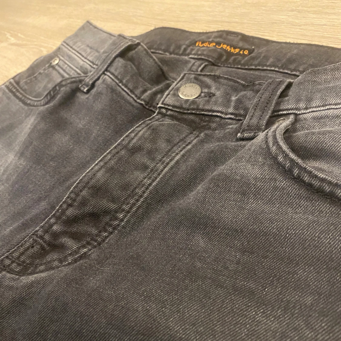 Snygga svarta jeans från Nudie Jeans med klassisk femficksdesign och broderad bakficka. Jeansen har raka ben, normal passform och är tillverkade i slitstarkt bomullsmaterial. Perfekt för dig som gillar stilrena och tidlösa jeans.