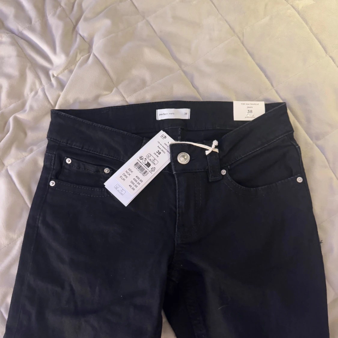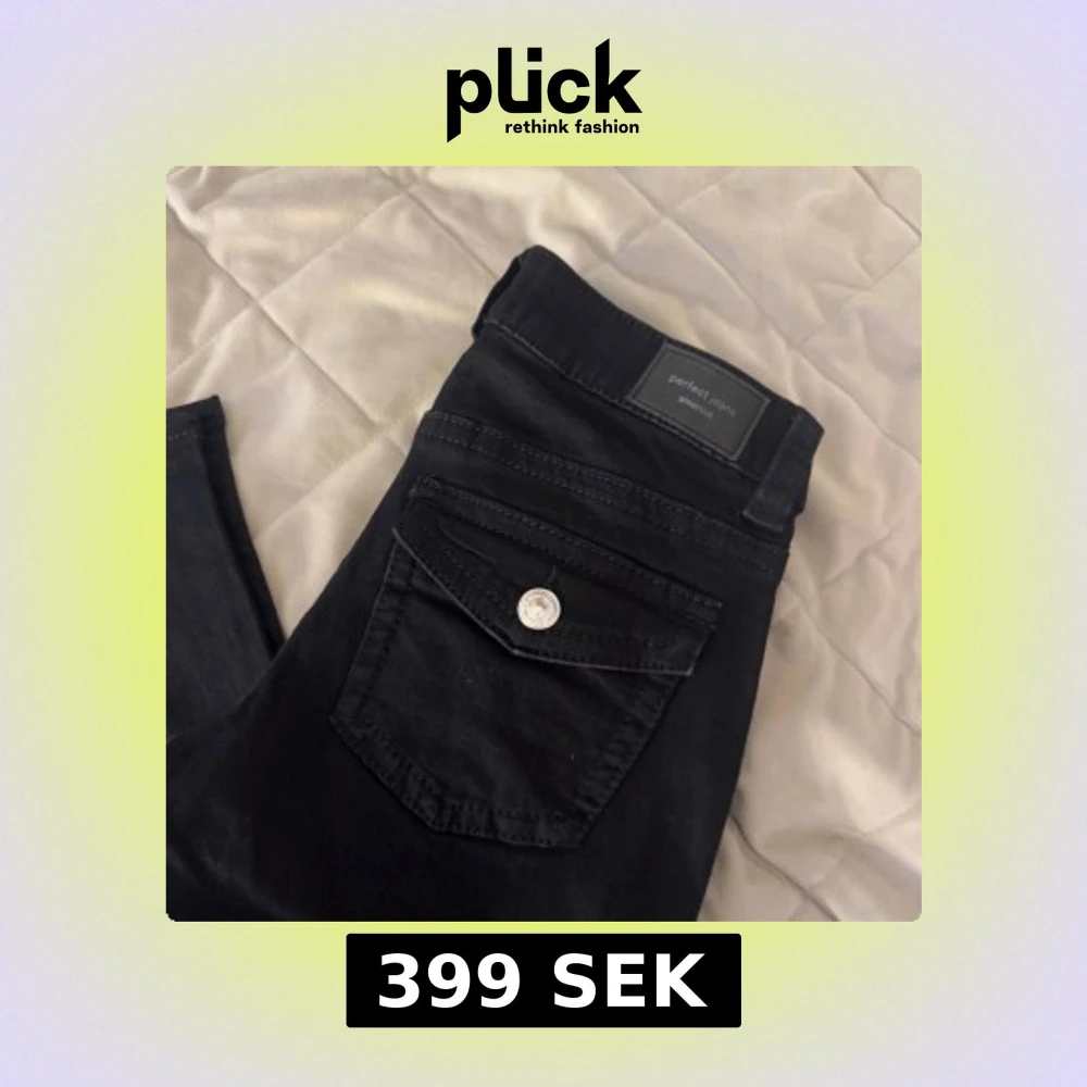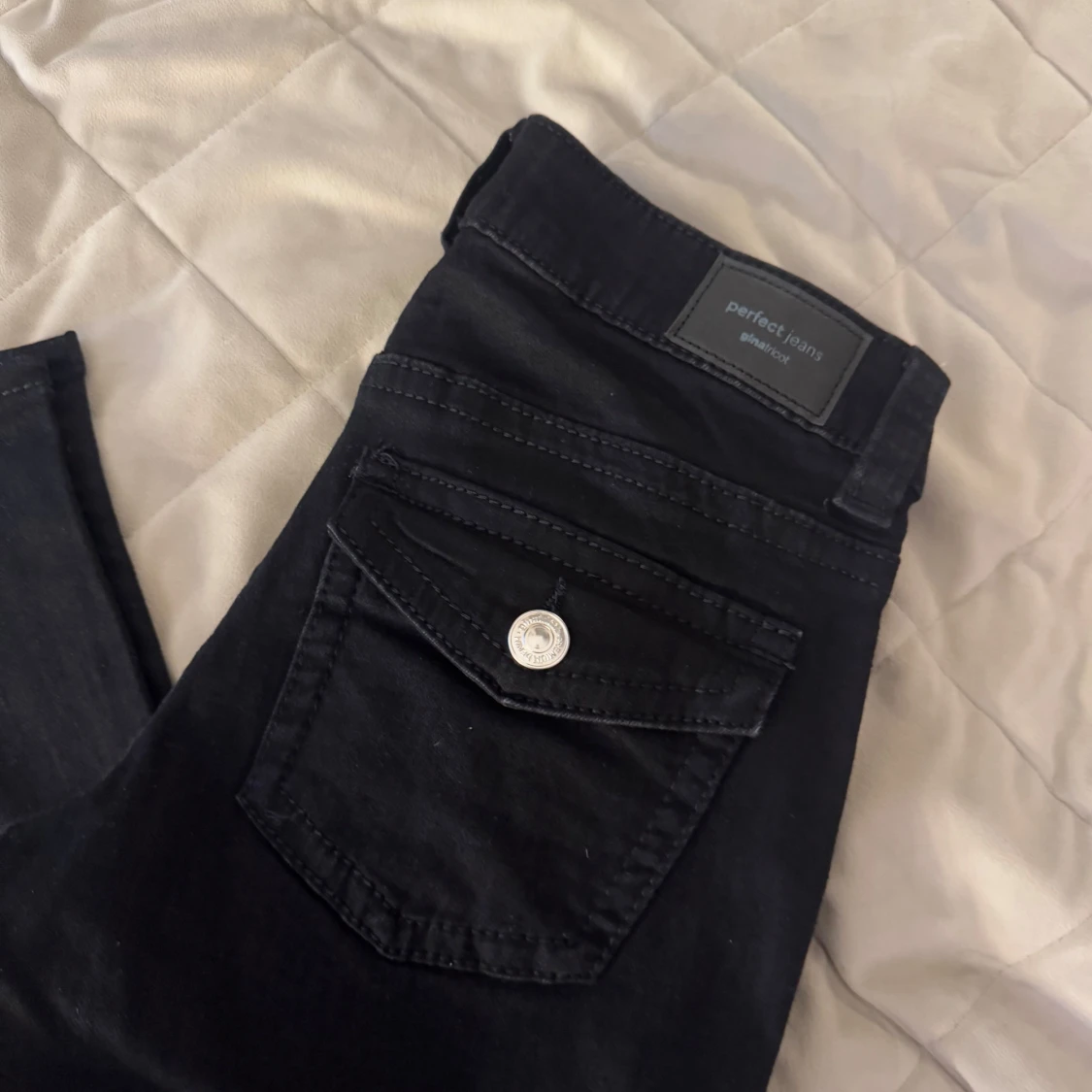 Snygga svarta jeans från Gina tricot med en klassisk design. De har en knapp och dragkedja framtill samt fickor både fram och bak. Perfekta för en stilren look. Dom är helt oanvända med prislappen kvar. Nypris 499kr
