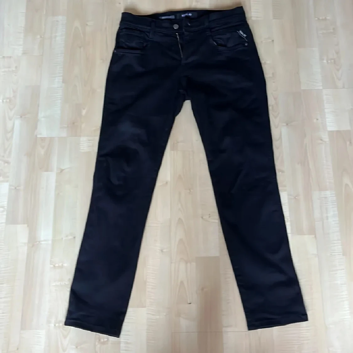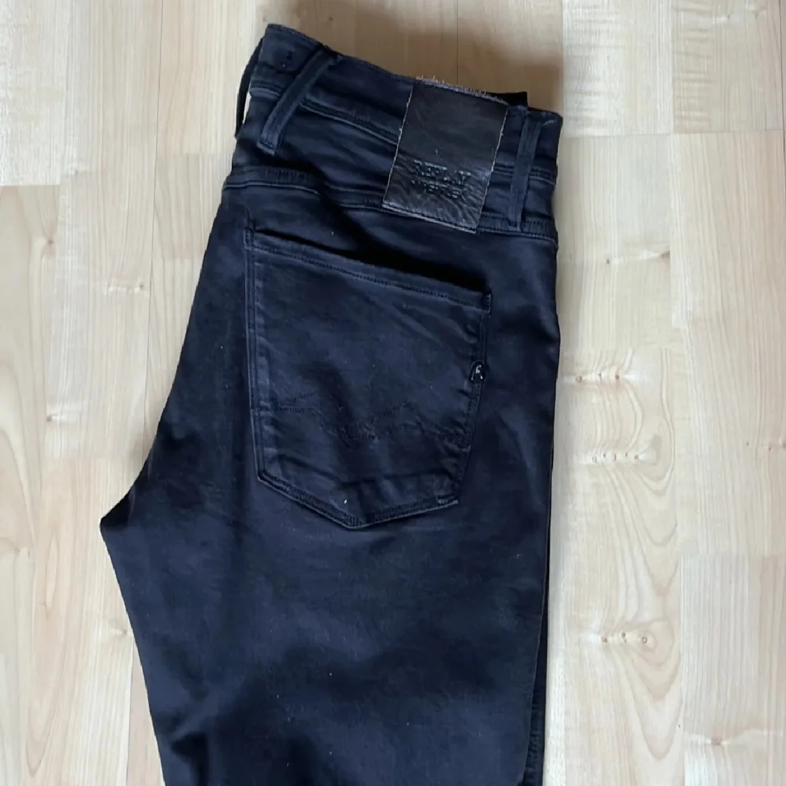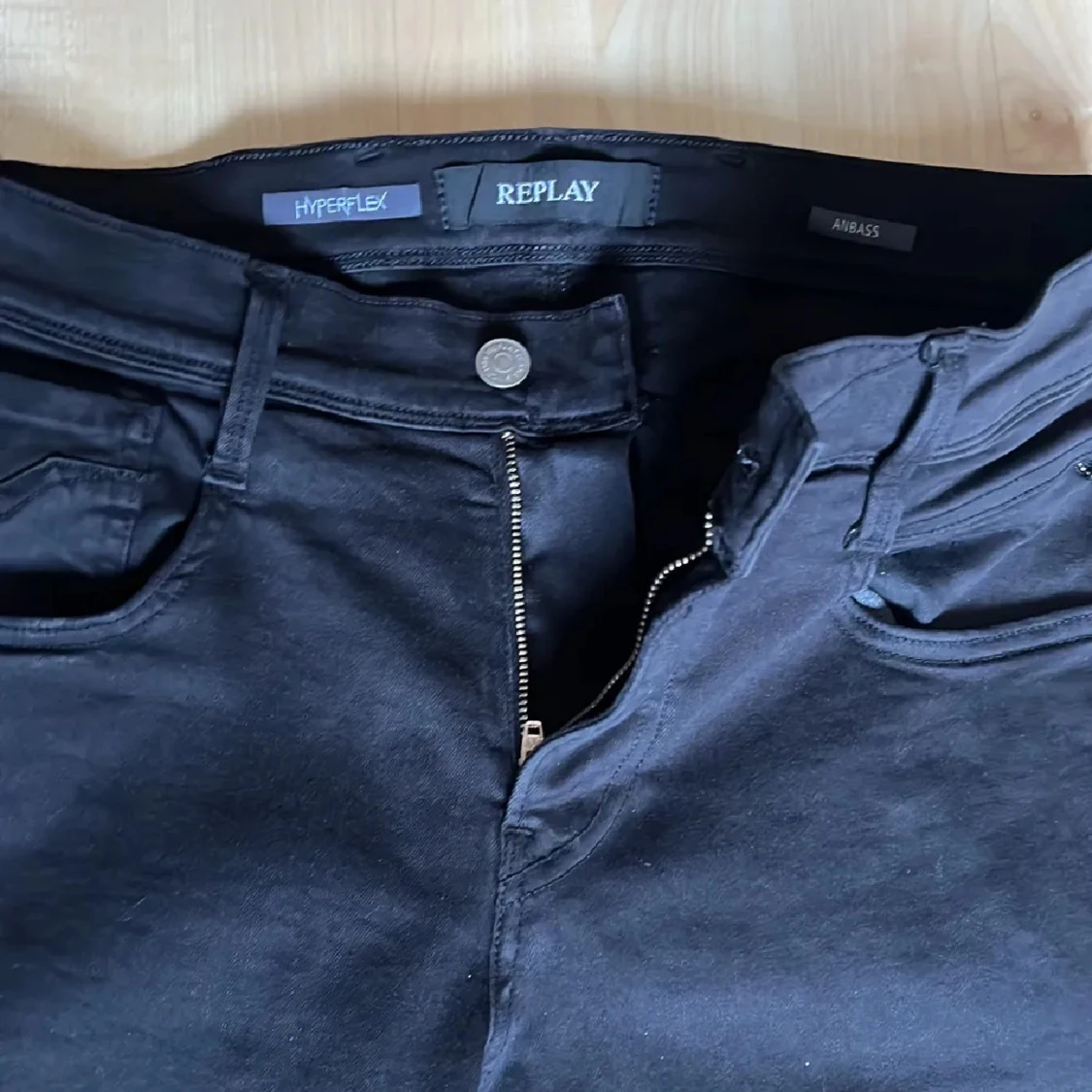 Snygga svarta jeans från Replay Hyperflex Anbass med dragkedja och knapp. De har en klassisk femficksdesign och är perfekta för en stilren look. Passar bra till både vardag och mer uppklädda tillfällen.