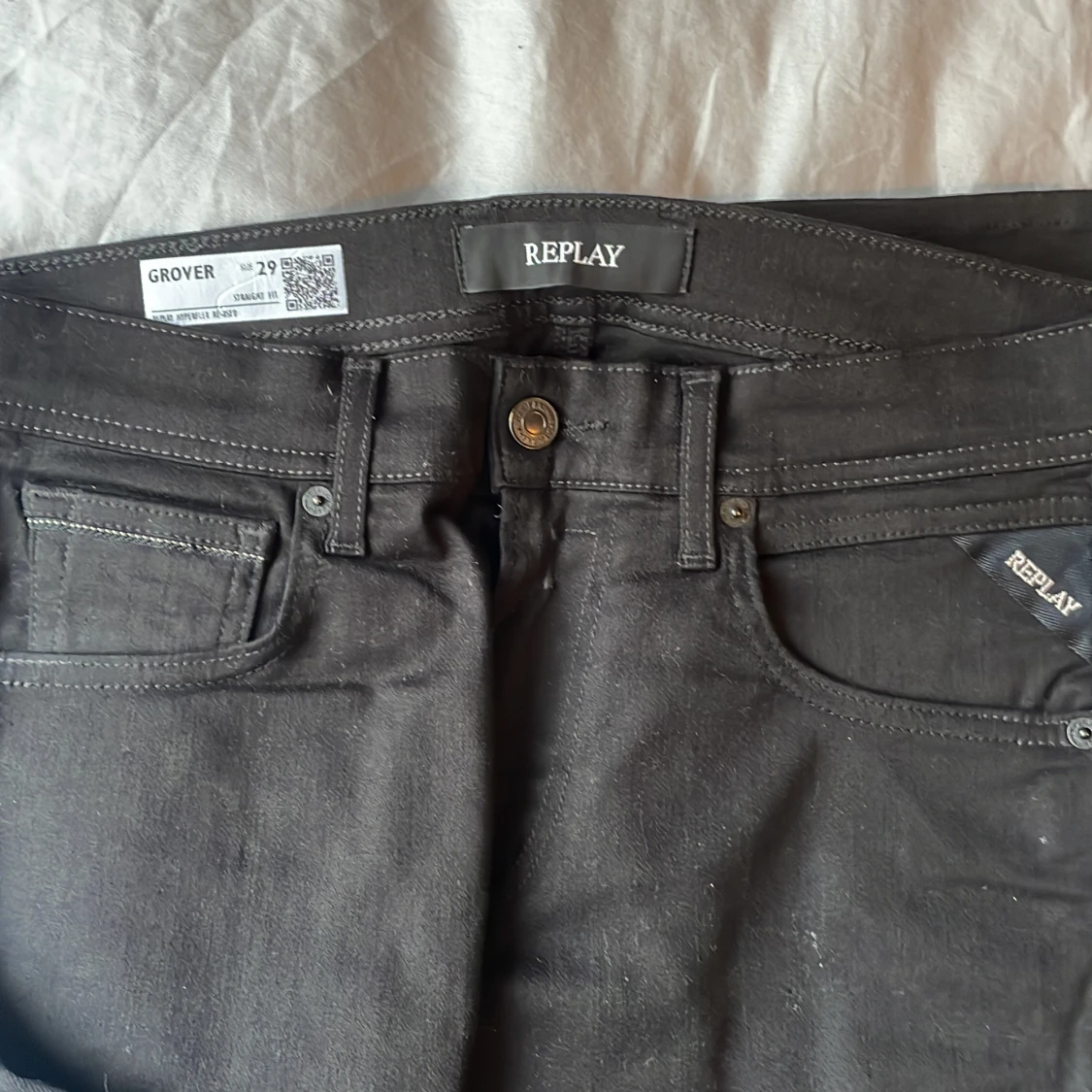 Snygga svarta jeans från Replay i modellen Grover. De har en klassisk femficksdesign med en knappgylf och bälteshällor. Perfekta för en stilren look.