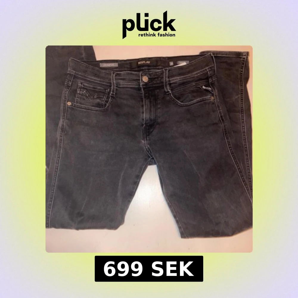 Snygga svarta jeans från Replay i modellen Anbass. De har en klassisk femficksdesign med knapp och dragkedja framtill. Perfekta för en stilren look. Köpt på replay hemsida och säljer för ett super pris vid frågor är det bara att skriva🤝🌟