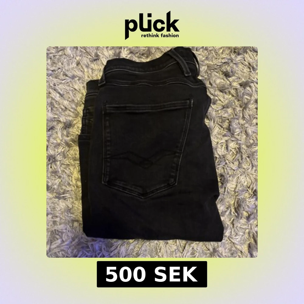 Säljer ett par svarta Replay Hyperflex jeans. Dem är för stora för mig som är 172. De har en slim passform och är tillverkade i ett stretchigt material för extra komfort. Perfekta för en stilren och grisch stil. Inga defekter. Skriv om ni har frågor!
