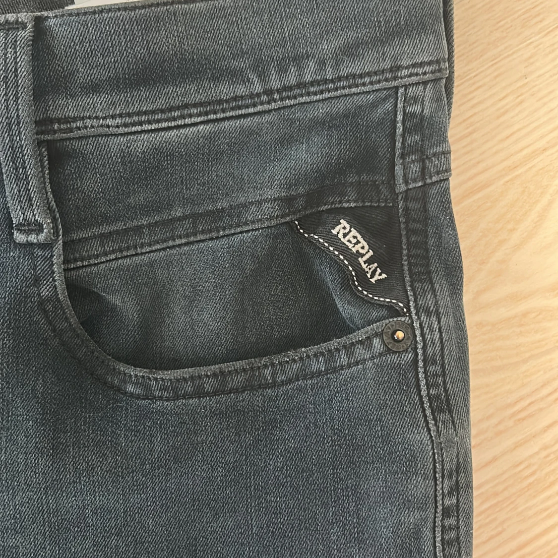 Snygga svarta jeans från Replay med en slim passform. De har en klassisk femficksdesign och en diskret logga på myntfickan. Perfekta för en stilren look.