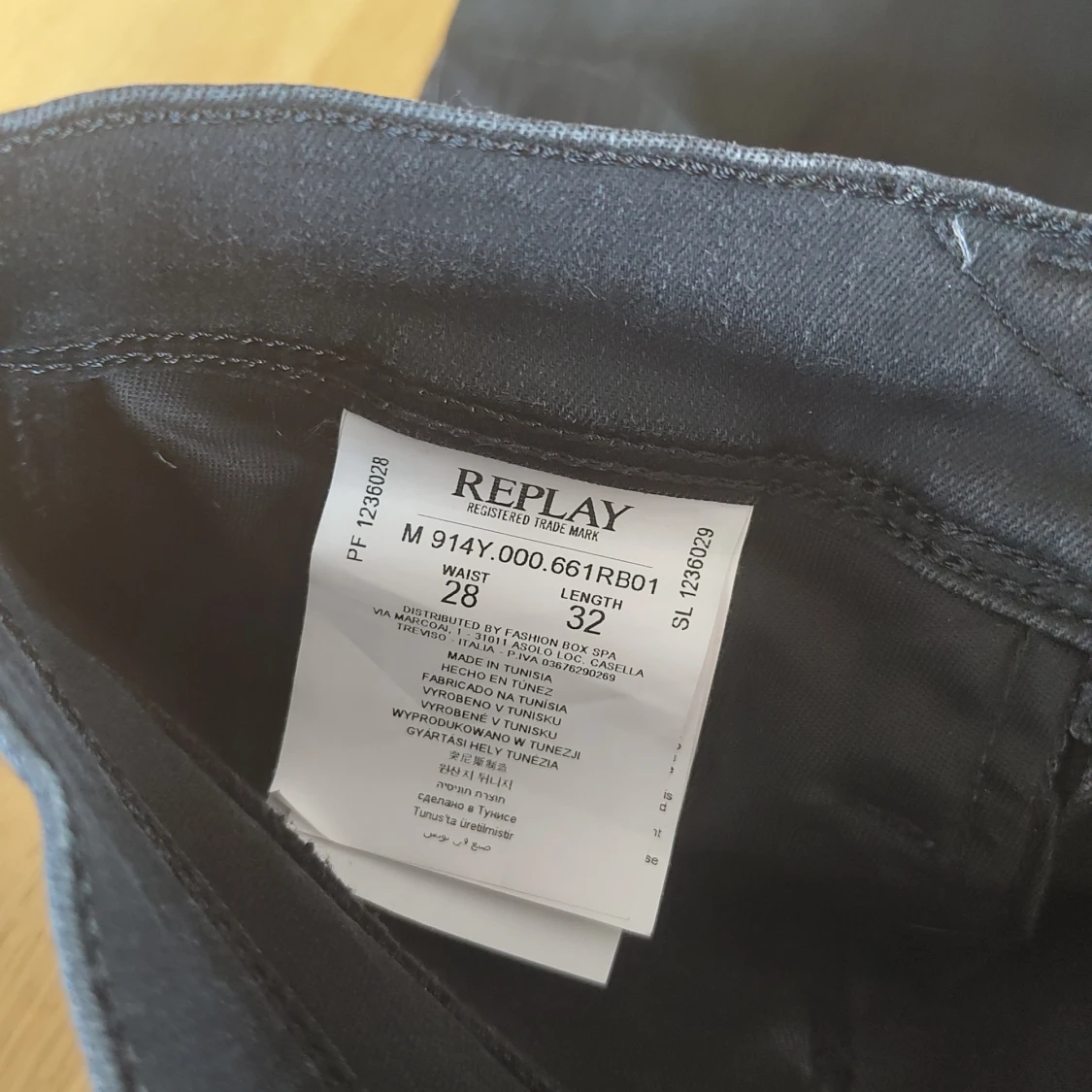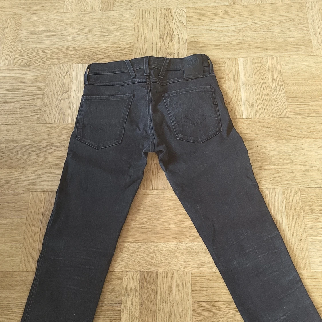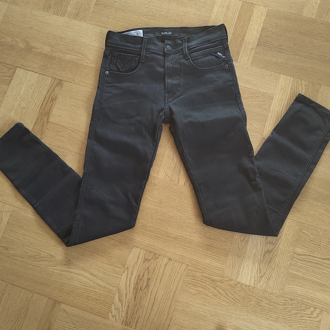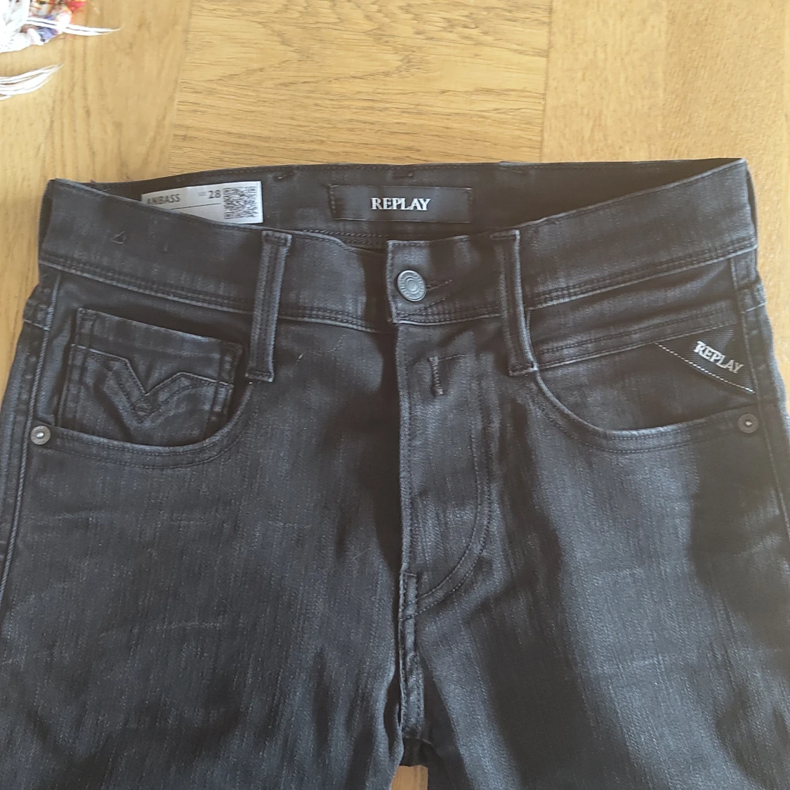 Snygga svarta jeans från Replay med en klassisk femficksdesign. De har en knappgylf och bälteshällor, vilket gör dem perfekta för en stilren look. Passformen är slim.