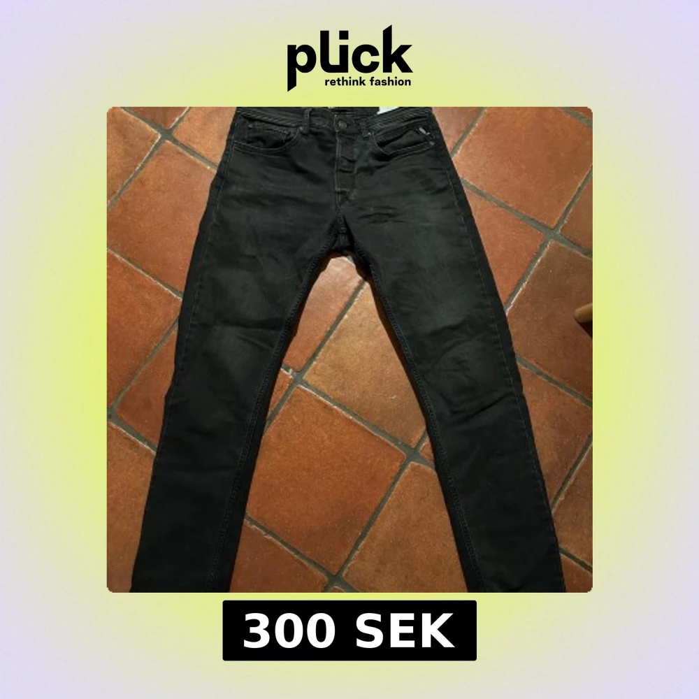 Snygga svarta jeans från Replay, modell Grover. De har en klassisk femficksdesign och knappgylf. Perfekta för en stilren look.