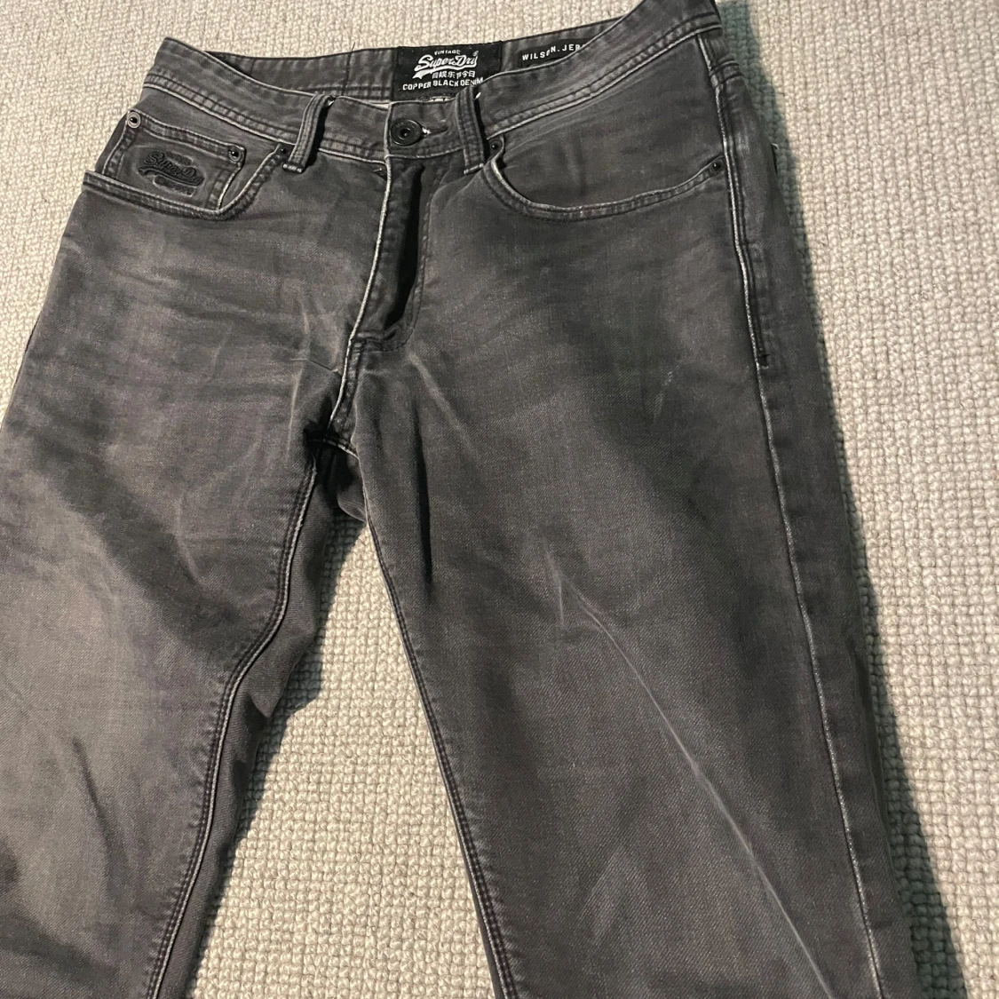 Säljer ett par svarta Superdry Wilson Jersey jeans med snygg tvättad look och klassiska fem fickor. Jeansen har en rak passform och är tillverkade i mjukt denimtyg. Märkesdetaljer på bakfickan och vid linningen ger extra stilpoäng. Pris kan diskuteras, vid eventuella frågor är det bara att höra av sig.