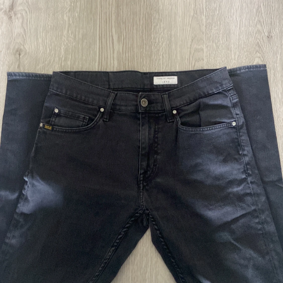 Snygga svarta jeans från Tiger of Sweden med klassisk femficksdesign och diskret logga på bakfickan. Jeansen har rak passform, perfekta till en stilren look. Materialet är mjukt och följsamt jeans i bomull.