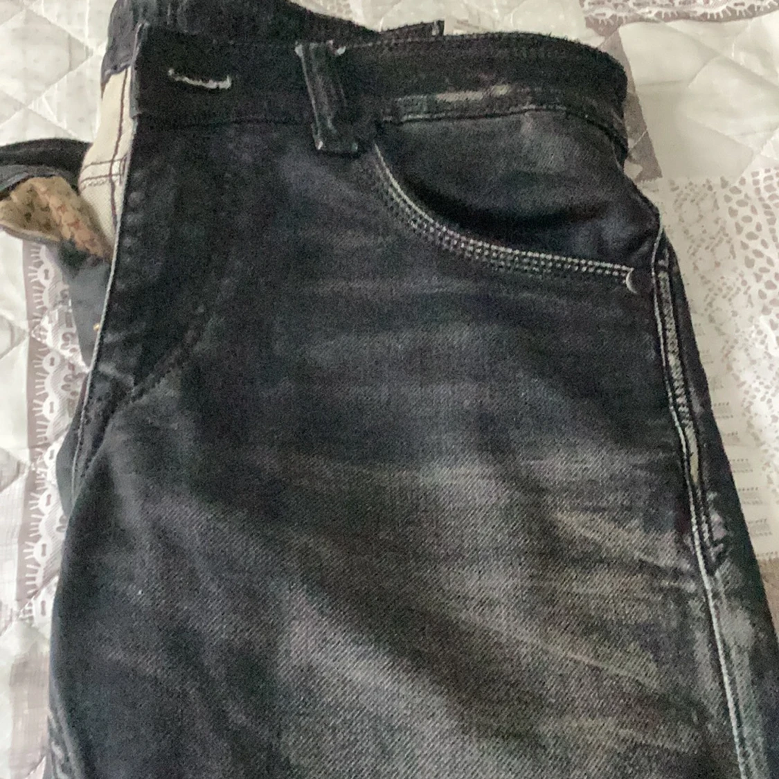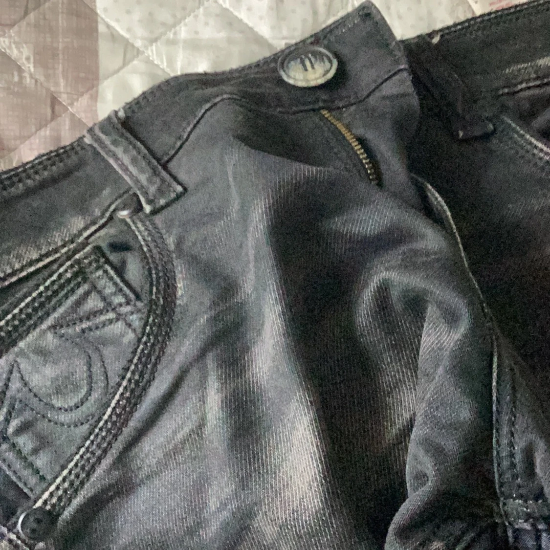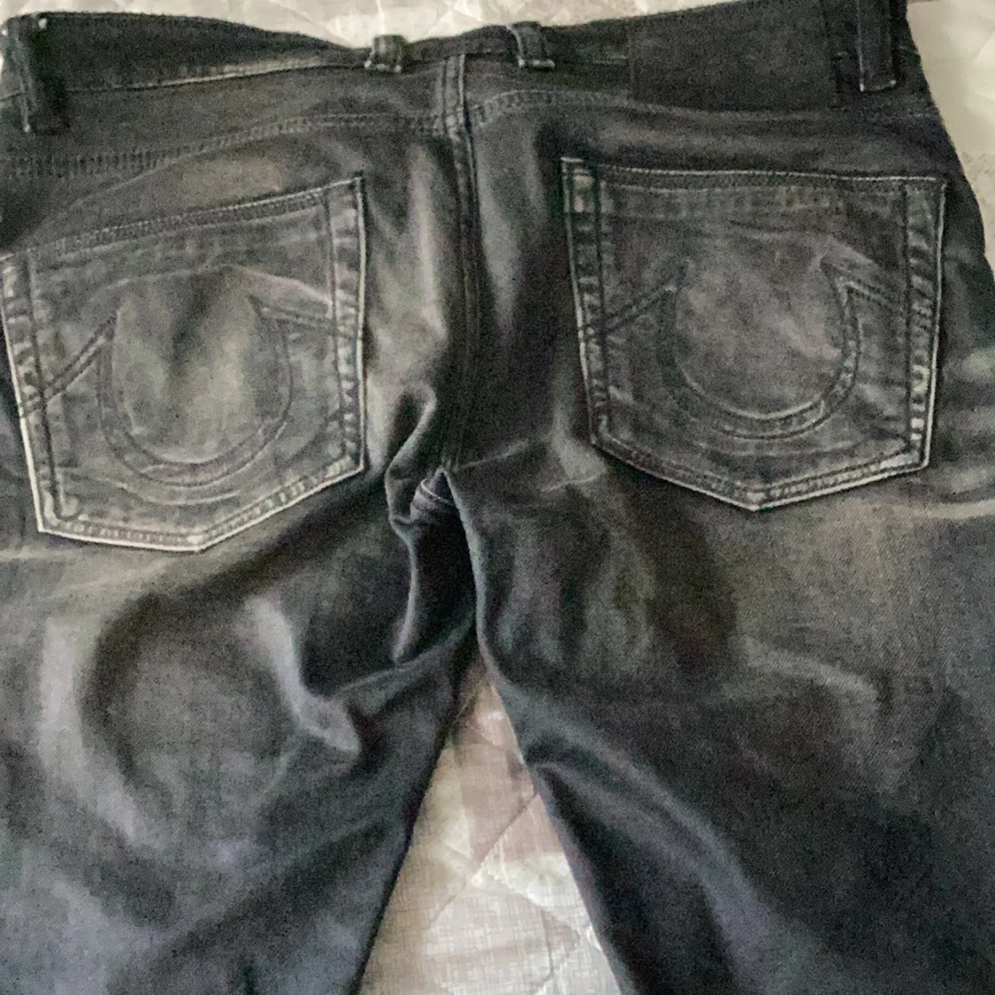 Snygga svarta jeans från True Religion med klassiska hästsko-sömmar på bakfickorna. Jeansen har en rak passform, fem fickor och coola slitningar framtill. Perfekta för dig som gillar streetwear och vill ha en unik look.