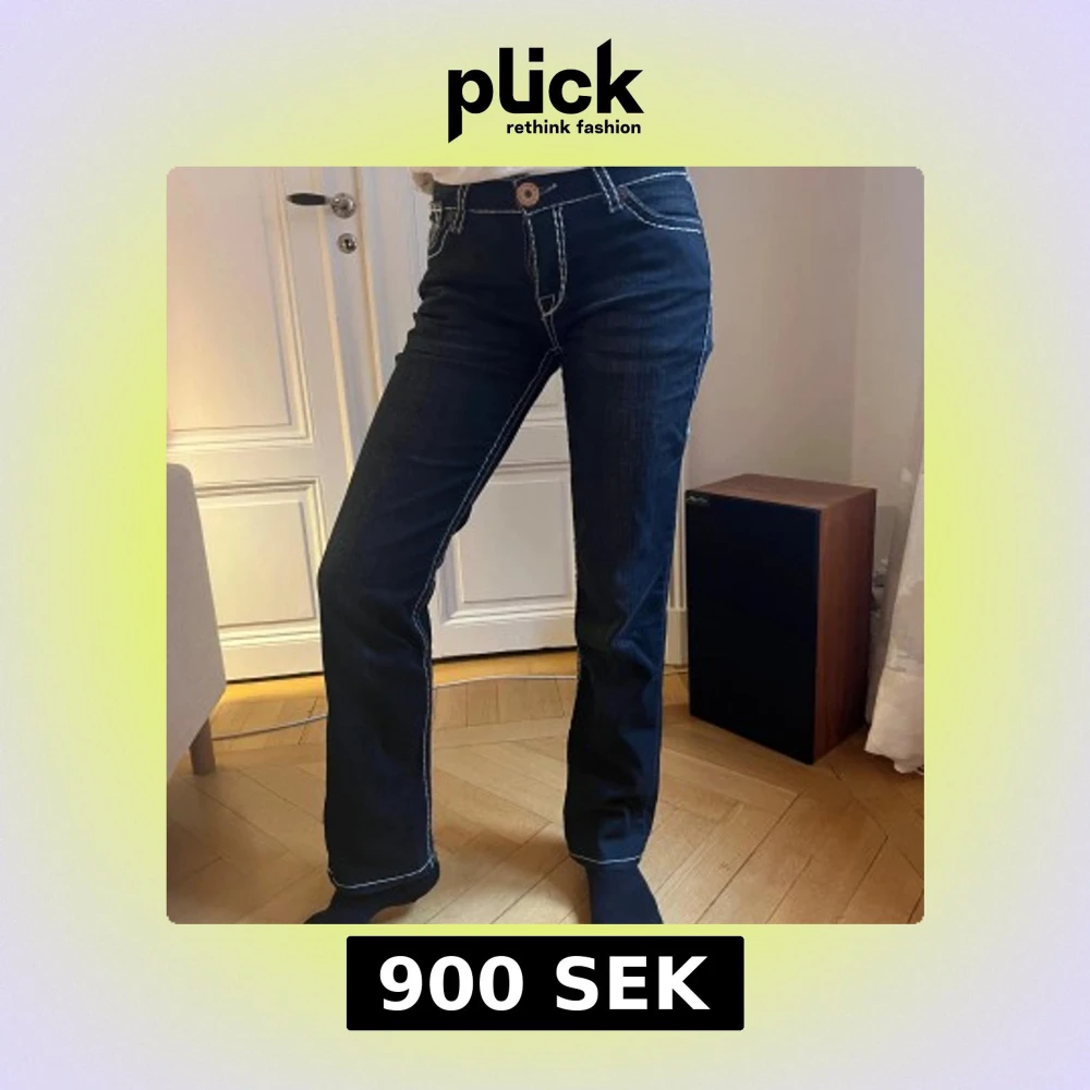 Snygga raka svarta jeans från True Religion med vita sömmar. I princip oanvända! Storlek 31 men passar mig som är 170 och 27 i jeans. Pris kan diskuteras. 🤍