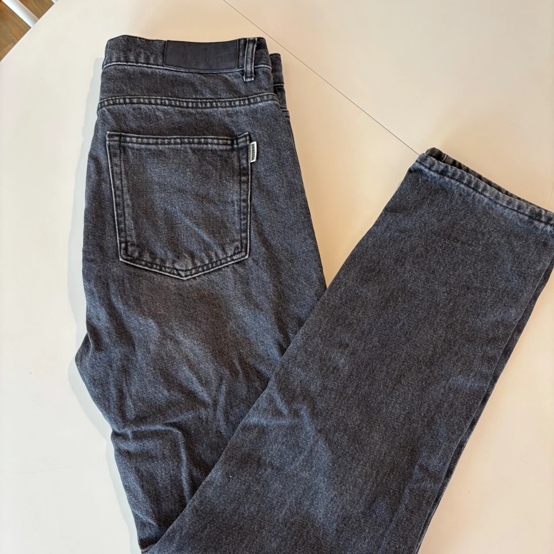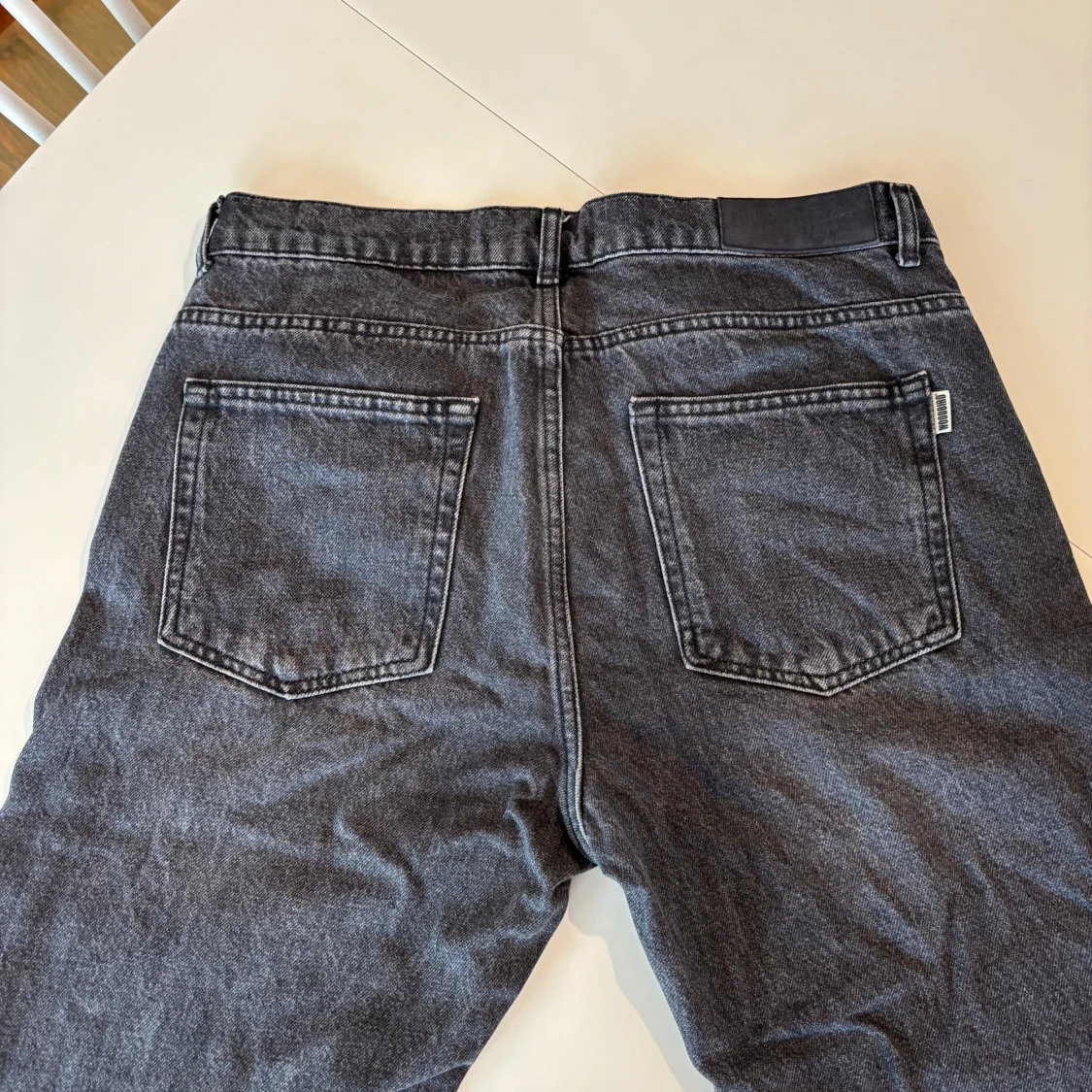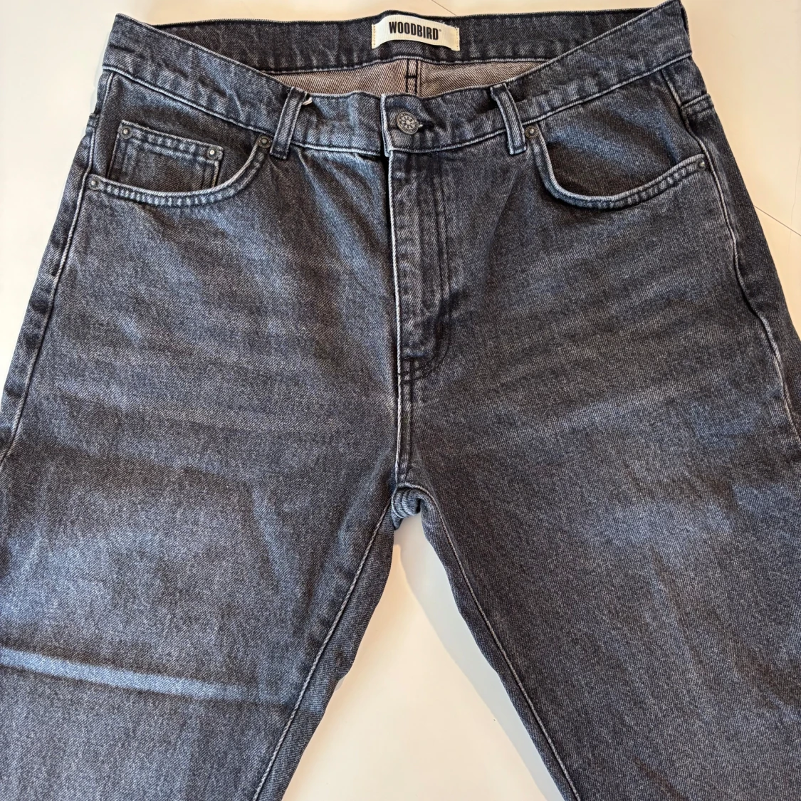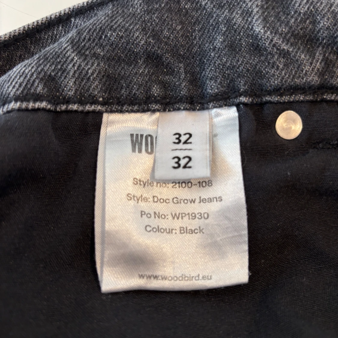 Säljer ett par svarta jeans från Woodbird i modellen Doc Grow Jeans. Dom är mer svart/mörkgrå än vad det ser ut som. Passformen är ganska relaxed med en vanlig gylf. Jeansen är använda enstaka gånger så otroligt bra skick. HÖR AV DIG VID MINSTA FUNDERING….