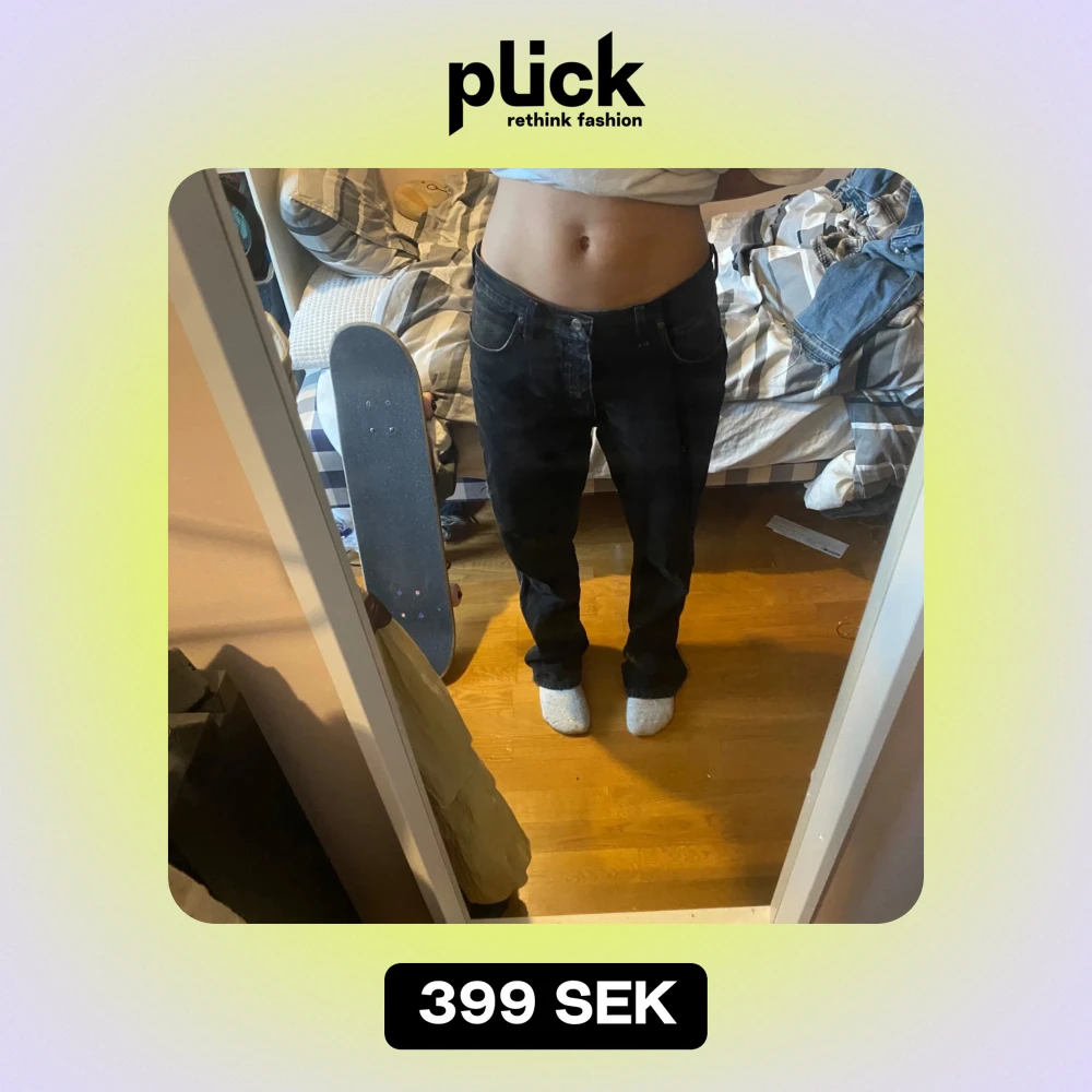 Säljer ett par svarta baggy low jeans från Wrangler i mycket bra skick. De har en liten reva på ena benet som ger dem en cool, sliten look vilket jag tycker ger en extra liten detalj i jeansen! Perfekta för en avslappnad stil. Skriv för mått :) pris kan diskuteras