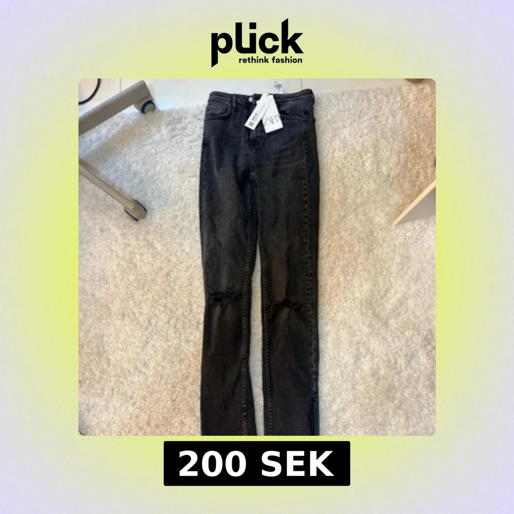 svarta jeans från Zara med slitna detaljer vid knäna och slits längst ner. Helt nya med prislapp