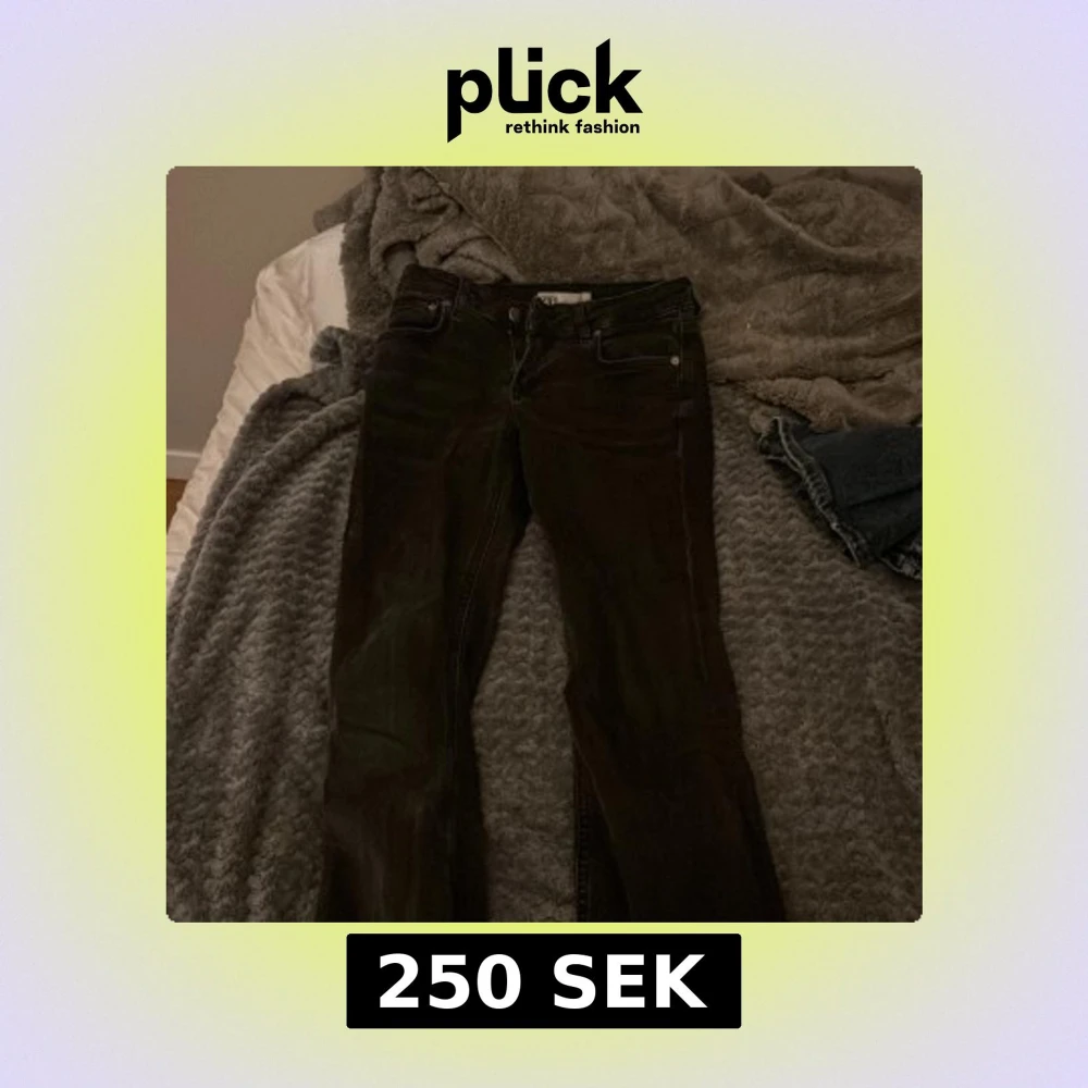 Säljer ett par svarta jeans från Zara i storlek 32. Jeansen har klassisk femficksdesign, dragkedja och knapp framtill samt snyggt tvättad finish. Modellen är rak och passar perfekt till en avslappnad stil. Materialet är mjukt och följsamt denim.