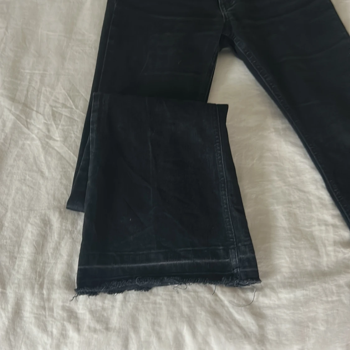 Svarta jeans från Ginatricot i storlek 32. Bootcut och super snygga!! Skriv för bild på. ⚠️Uppsprättade nertill
