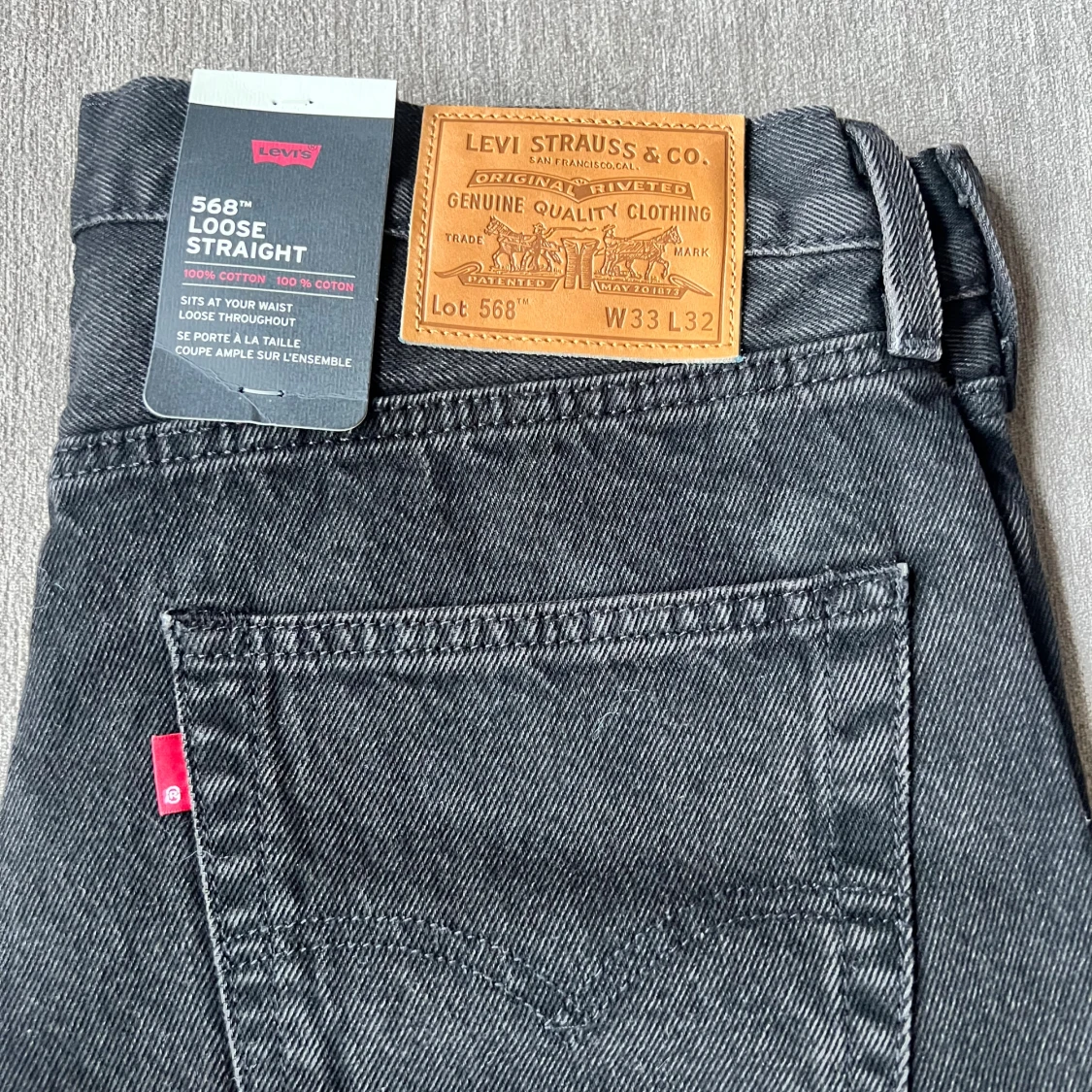 Svarta jeans från Levi's modell 568 Loose Straight. De har en rak och loose passform med klassisk femficksdesign och Levi's läderpatch bak. Jeansen är tillverkade i 100% bomull och har en mörk ton som ger en cool vibe.