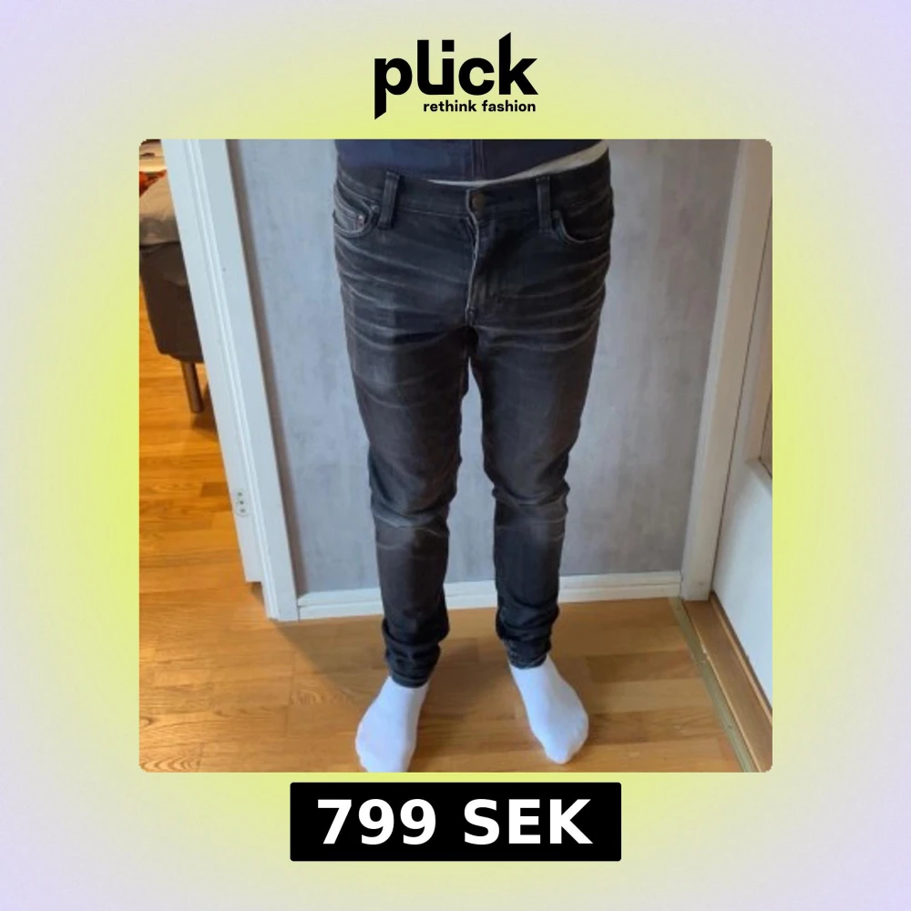 Säljer ett par svarta jeans me sjuk fade. Ni kommer ej hitta snyggare svarta jeans än demma. Modellen är 181 och väger 65. Skriv vid frågor eller liknande!