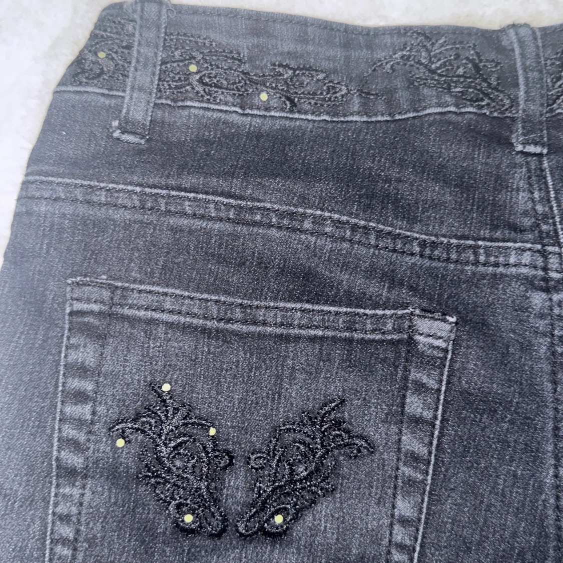 Snygga svarta jeans från H&L Jeans med raka ben och coola broderade detaljer samt små nitar på bakfickorna och linningen. Klassisk femficksmodell i jeansmaterial, perfekt för dig som gillar en stilren look med en twist.