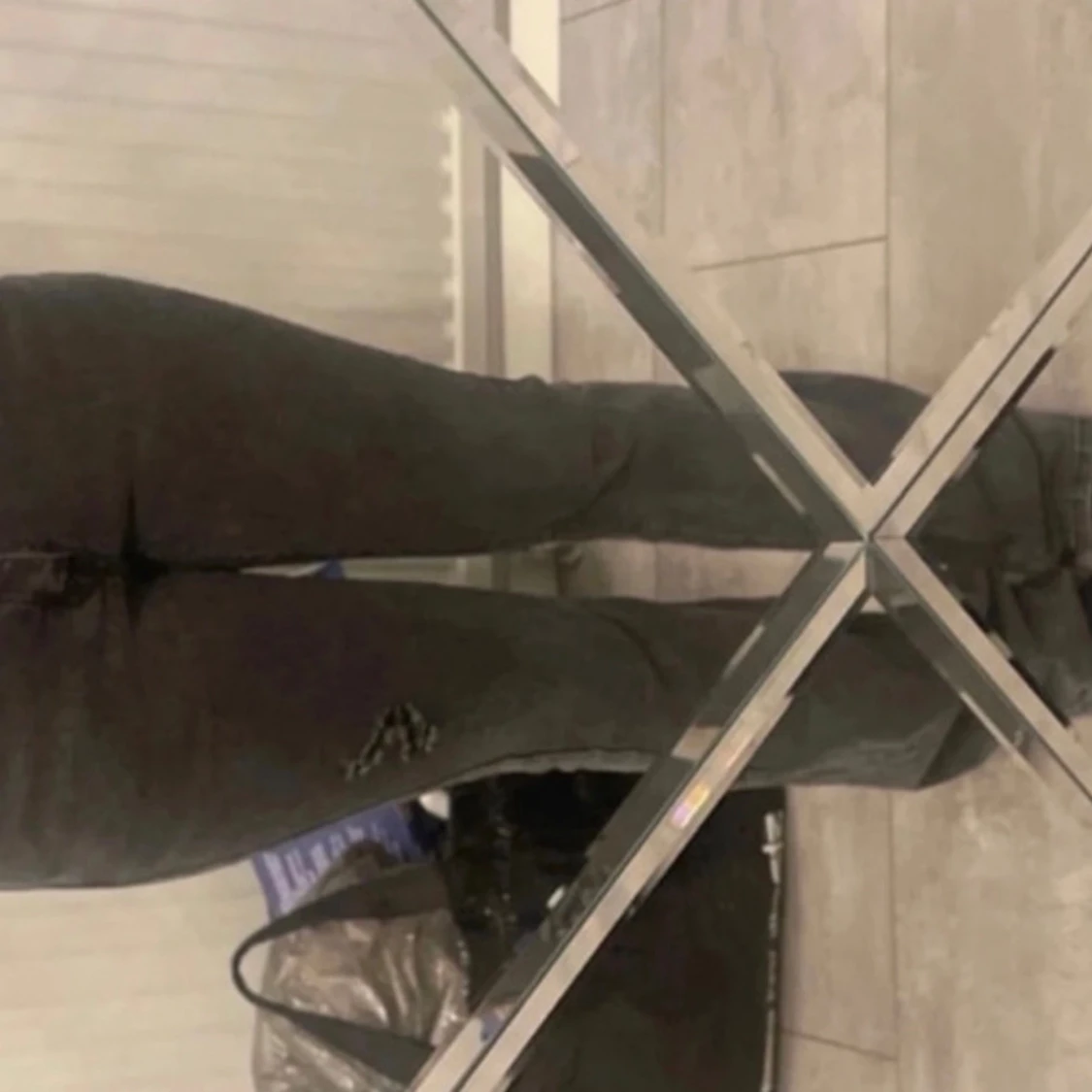 Snygga svarta jeans med slitningar på låret. De har en tight passform och är perfekta för en trendig look. Jeansen har klassisk femficksdesign och knappgylf. DE ÄR LOWWAIST